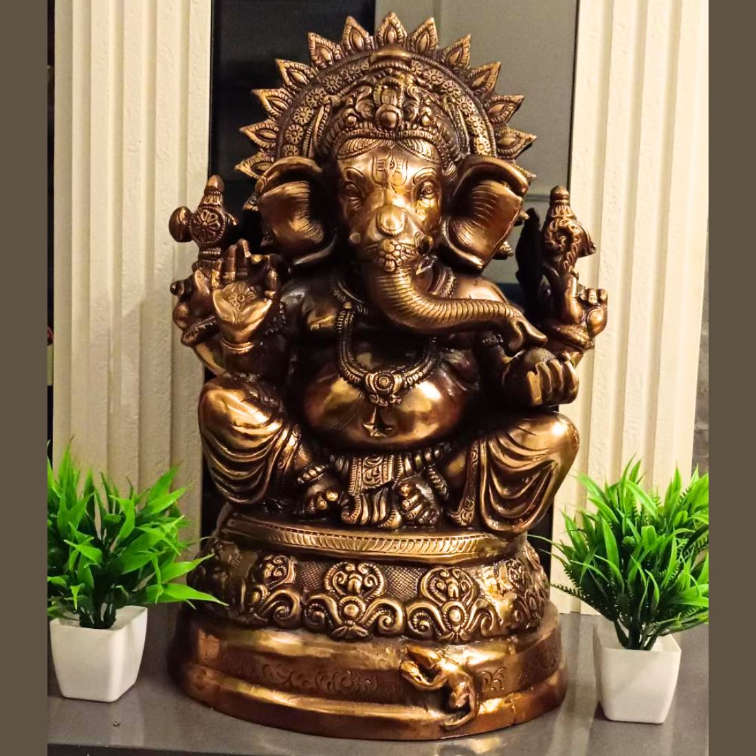Bought this Ganesh statue for our home and it looks wonderful. The finish is beautiful, it adds such a positive vibe.