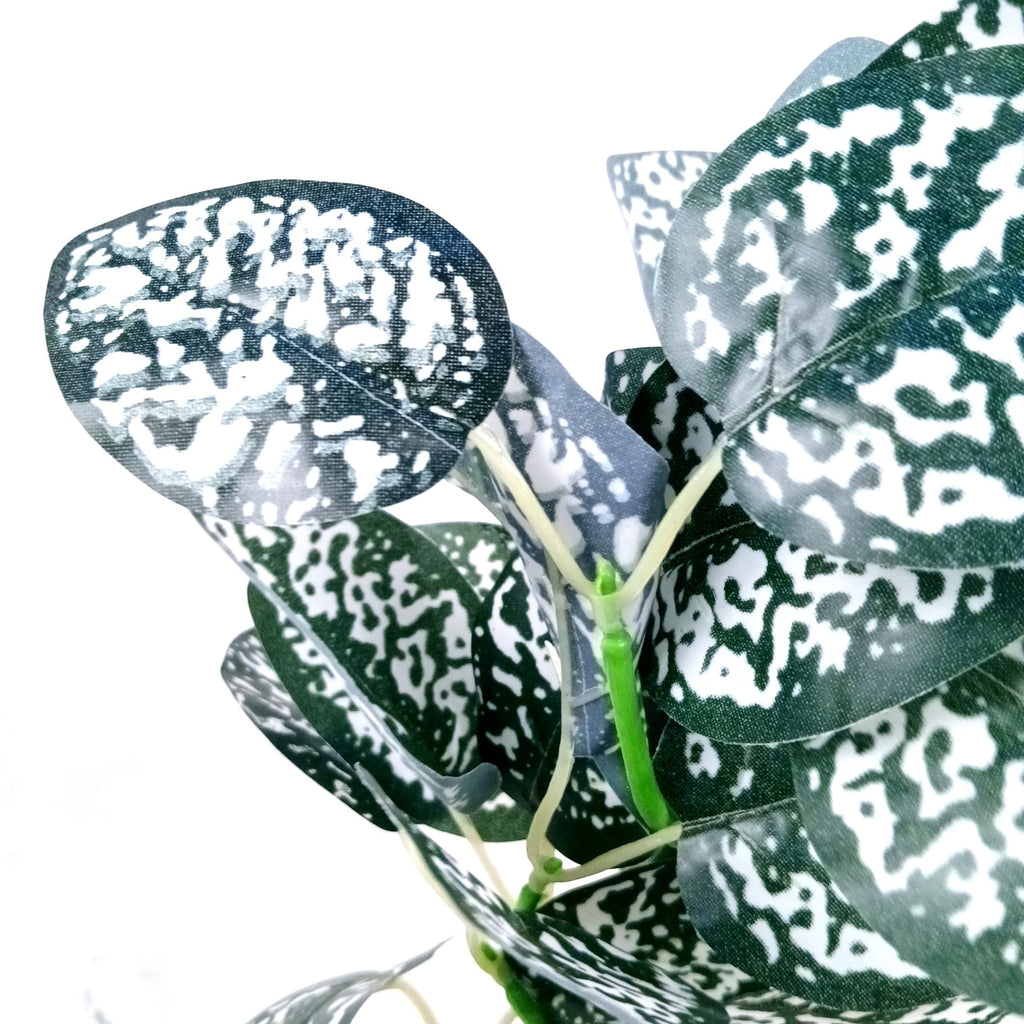 Realistic Faux Leaf Design – Natural-looking vine plant in a handcrafted wooden pot.