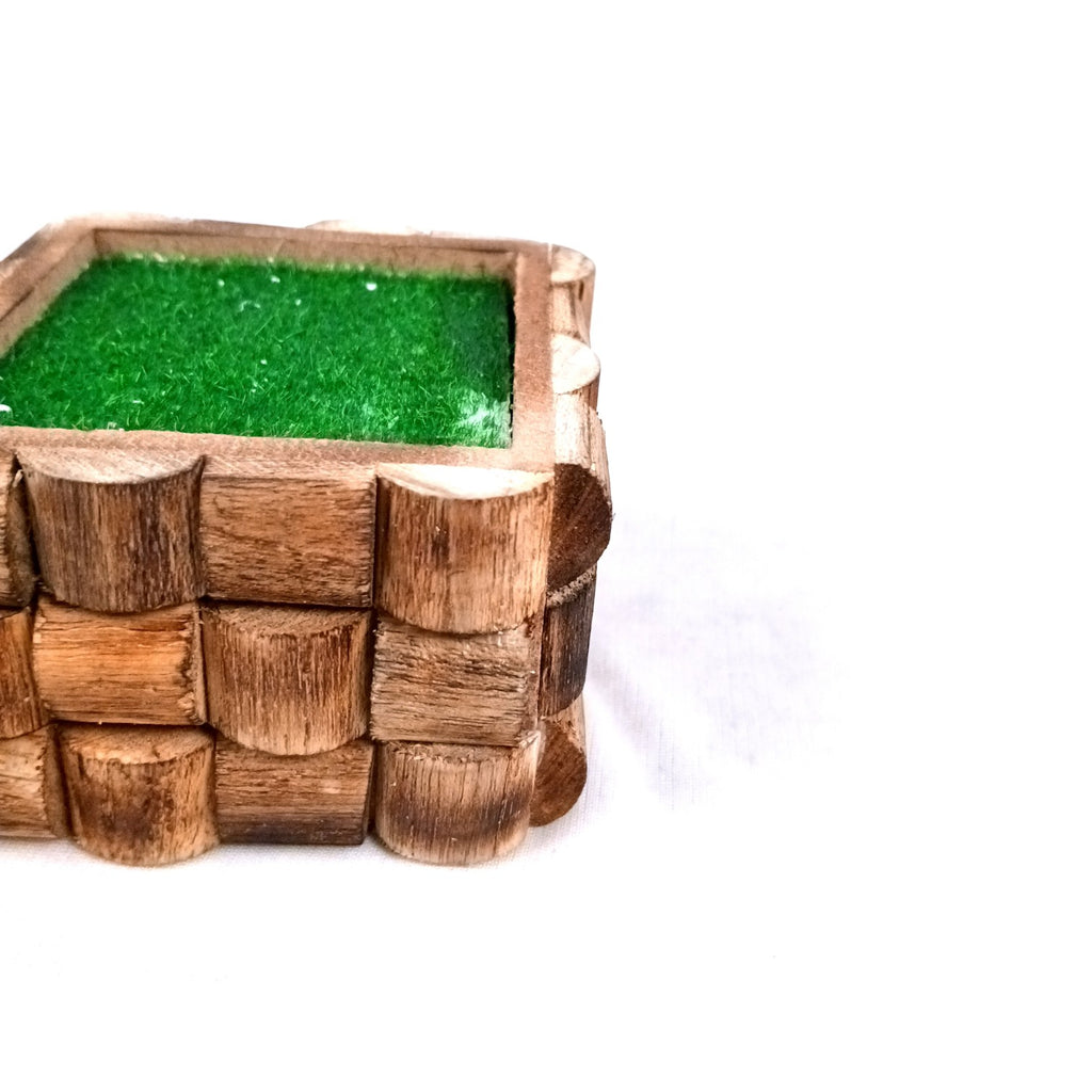 Crafted with vibrant, lifelike leaves and placed in a sturdy handcrafted wooden pot, this décor piece seamlessly blends tradition with modern style. Its compact design makes it ideal for placing on tables, shelves, desks, or window corners, giving any room a refreshing, nature-inspired look.