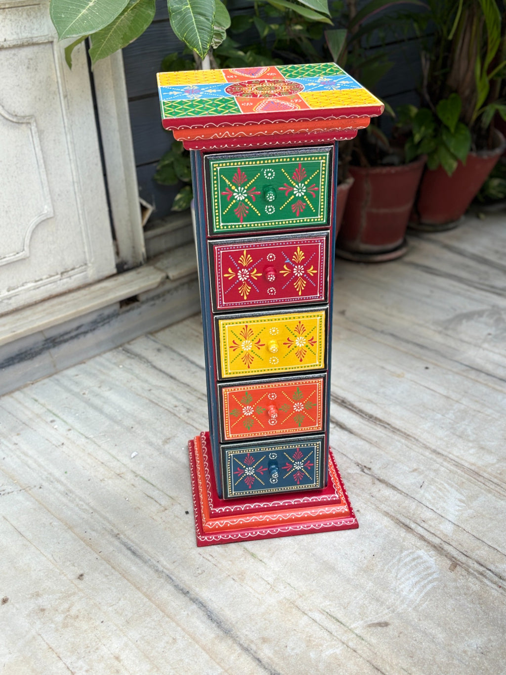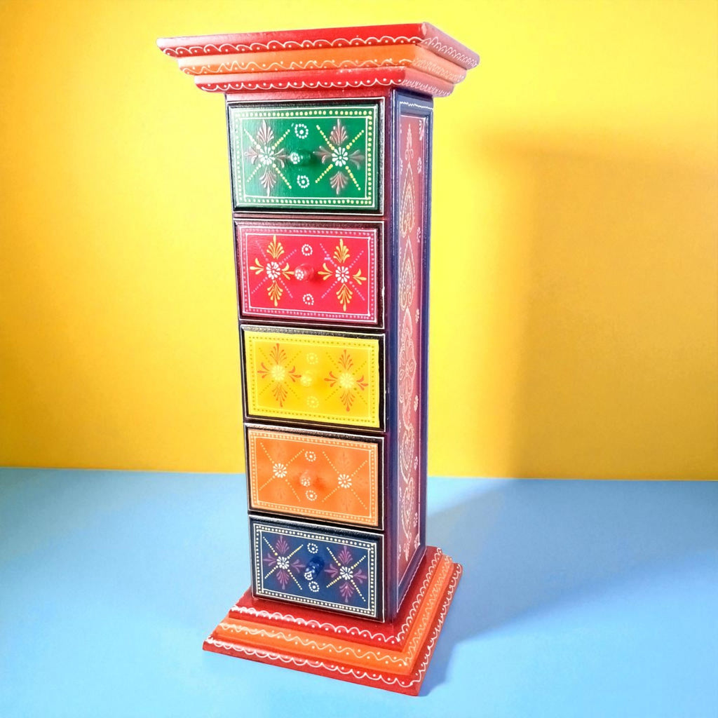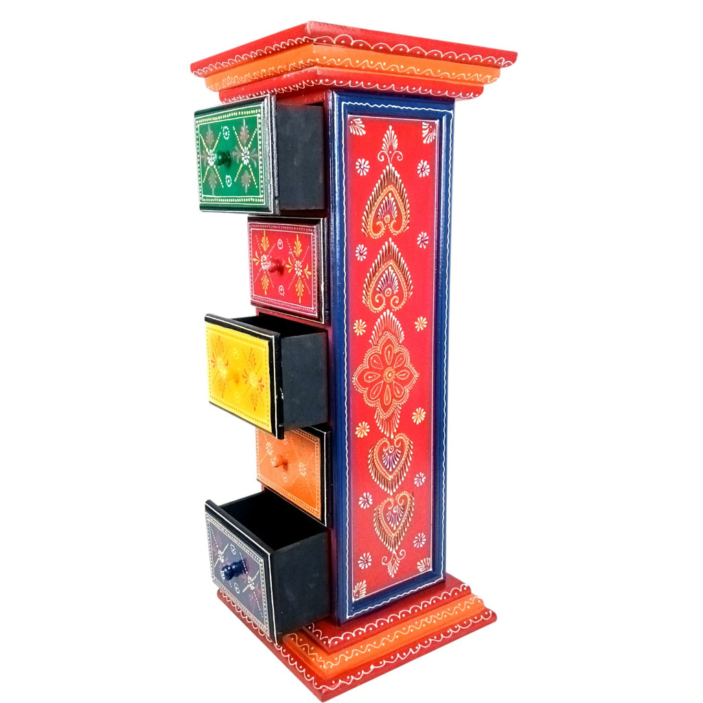 Ideal for those who appreciate the charm of handicraft furniture, the Wooden 5 Drawer Almirah Pillar makes for a thoughtful gift for housewarmings, weddings, or special occasions. Its durability ensures it will be a cherished part of your home for years to come.