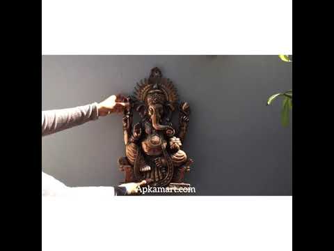 Lord Ganesh is one of the most worshipped gods in India and is known to be the symbol of good fortune. Ganesha, the Elephant-headed God, instills wisdom and goodness in all one meets. Place this wall hanging in your Pooja Room to bring positive energy into your home. The mudra of Ganesha gives blessings to carry the positive vibes wherever they are required. Ganesha is the remover of obstacles, god of wisdom and intelligence. The sitting position of Ganesha also indicates his wisdom at work as he contemplates problems and their solutions. This is an excellent choice for worship room or pooja room of any temple or home use. Decorated in detailed carving this beautiful wall hanging is sure to add color and energy to any space.