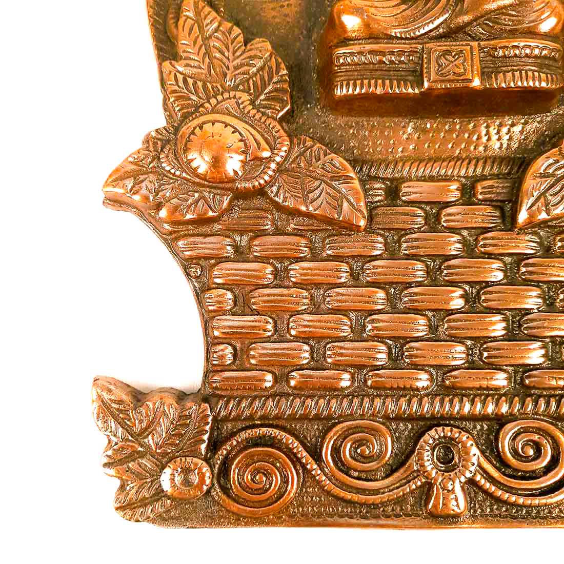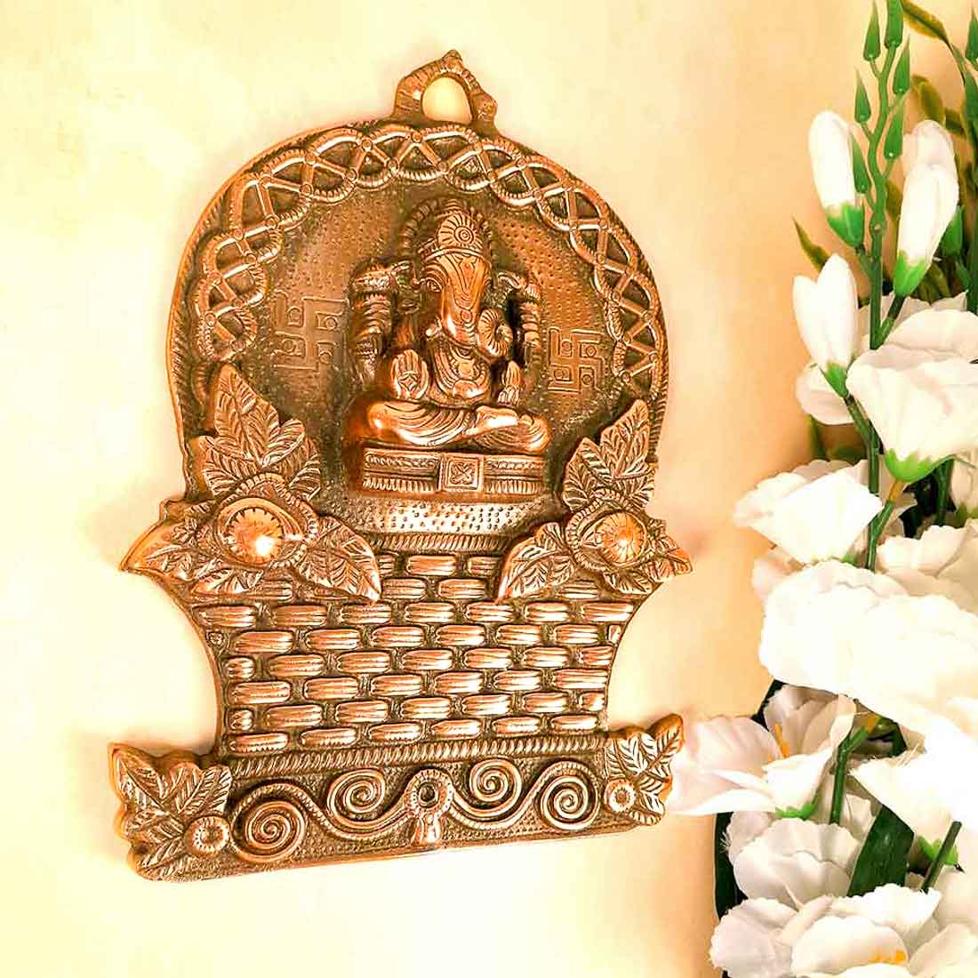 Placing it at the entrance, main gate, or pooja room not only adds a touch of cultural richness but also adheres to vastu principles, promoting a balanced flow of energy. Crafted from durable metal, this exquisite wall decor piece is more than just an artful adornment. It doubles as a meaningful housewarming gift, a distinctive wedding or Diwali present, or a heartfelt gesture for birthdays and other special occasions. Its small size ensures versatility, allowing it to effortlessly grace any room in your house, including your living room, office, or even your personal meditation space.