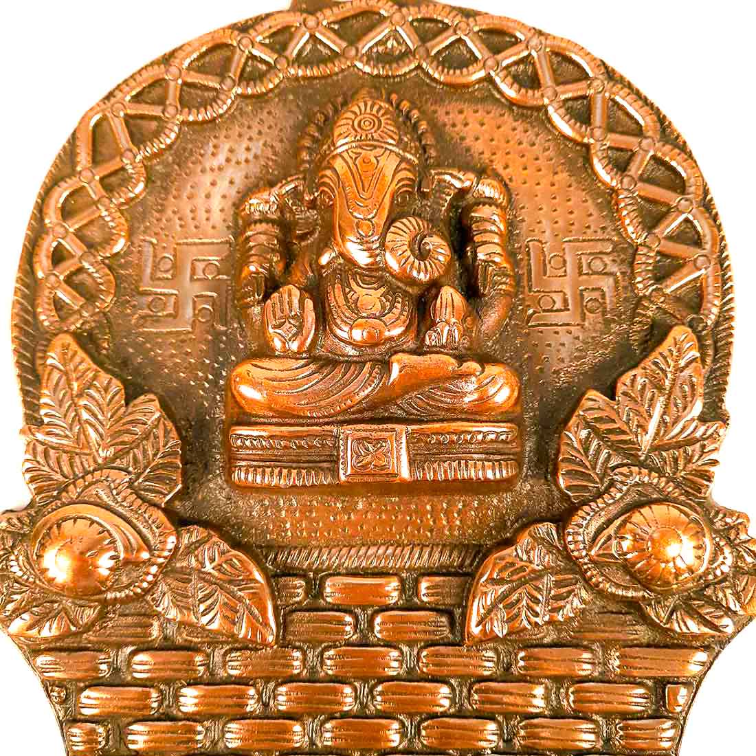 Elevate your living environment with this remarkable piece, and let the blessings of Lord Ganesha and the swastik signs usher in a world of harmony and well-being. Whether you're seeking a striking addition to your own space or a meaningful gift, this metal wall decor effortlessly encapsulates the essence of Lord Ganesha's grace and charm.
