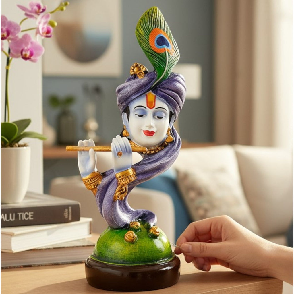 The multicolor finish enhances the artistic appeal of the idol, bringing life and positivity to your home mandir, living room table, office desk, shelf, or spiritual corner. The graceful posture of Krishna with the flute creates a calm and devotional atmosphere that uplifts the energy of any space.