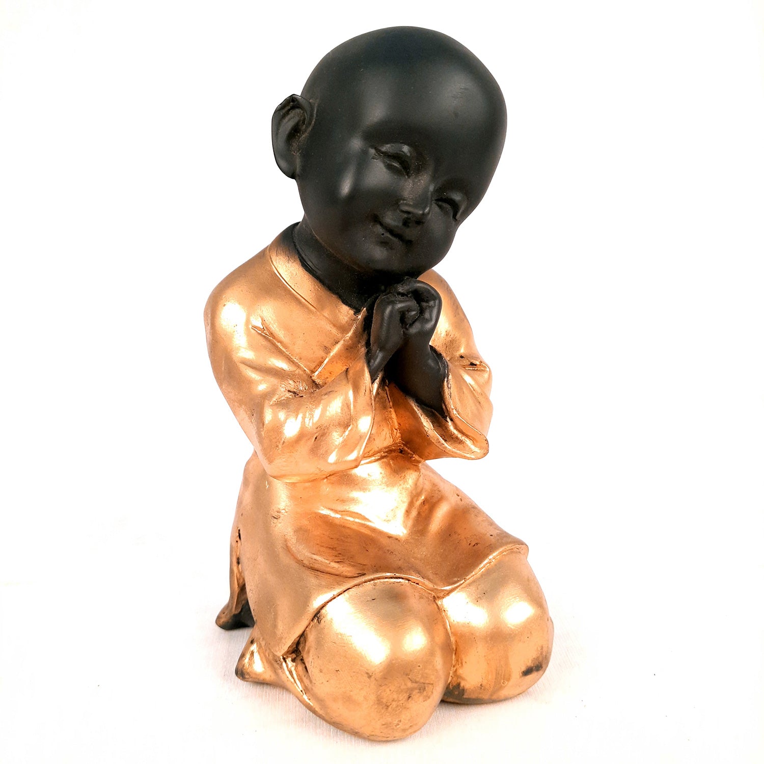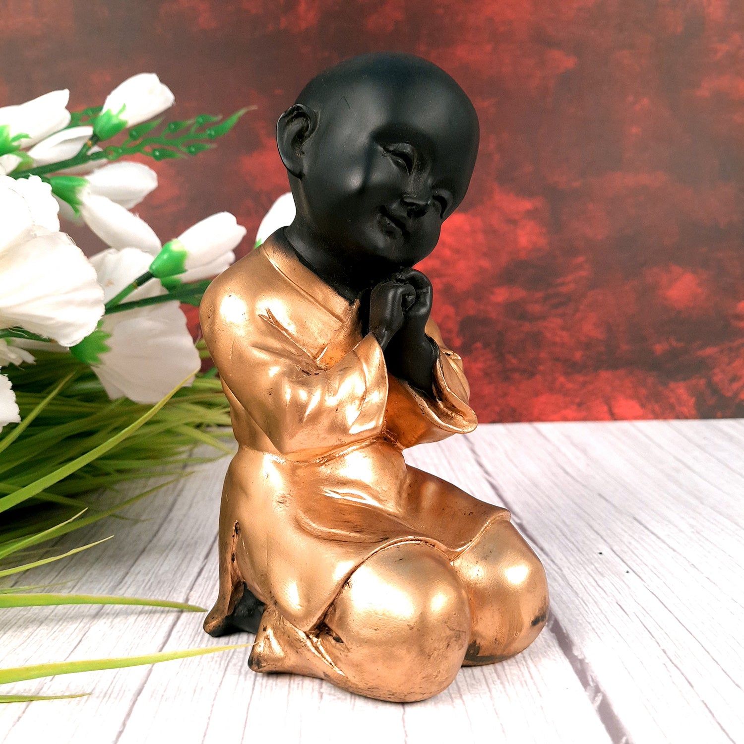 Monk culture originated from Buddhist religious beliefs. It is based on serenity and modesty. It propagates simplicity and teaches one to lead a life by rules and laws. Apkamart brings the same essence of Buddhist teachings through this supremely cute baby monk showpiece.
