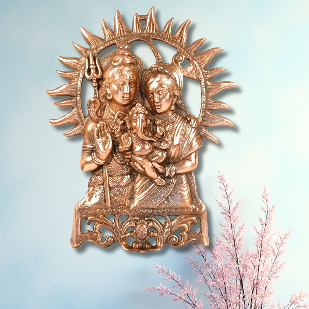 Shiva Parvati Ganesh Wall Hanging | Shiv Parivar Metal Idol Wall Décor for Home, Pooja Room & Office | Religious Wall Art for Vastu & Auspicious Gifting - 16 Inch