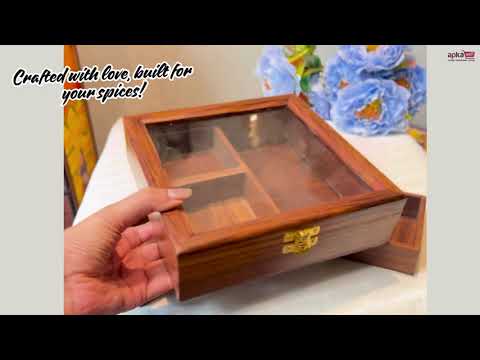 This wooden spice box with lid features 4 spacious compartments, ideal for storing commonly used Indian spices such as turmeric, chili powder, cumin, cardamom, or salt. It can also double as a dry fruit box or namakdani, making it a versatile addition to your dining table or countertop. The airtight lid helps preserve the freshness, aroma, and flavor of your ingredients, ensuring they remain uncontaminated and ready for everyday use.