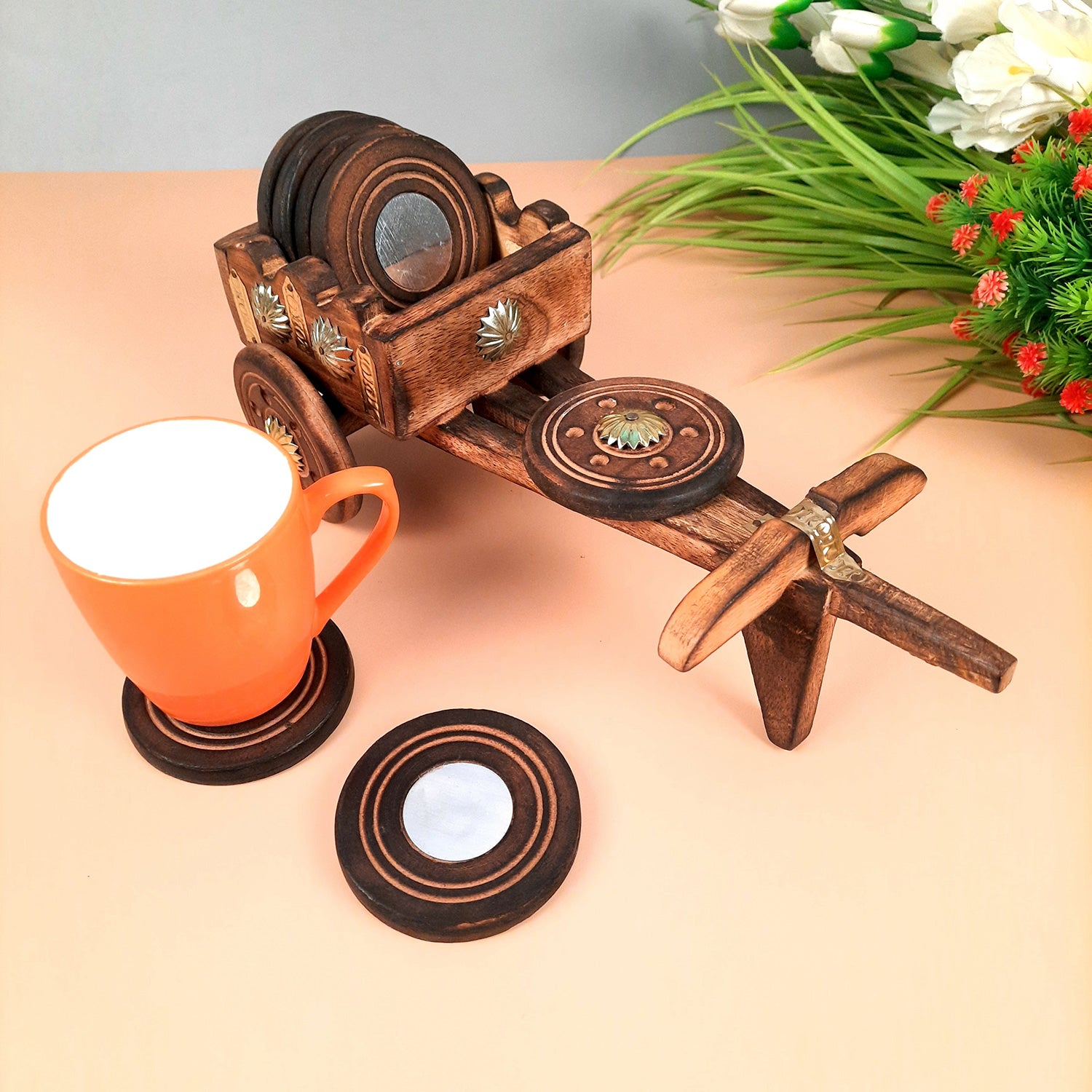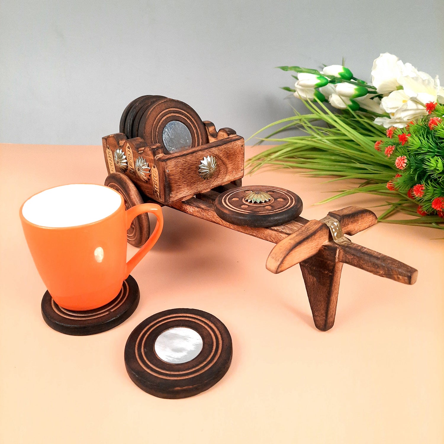 Upgrade your table setting with our cart Design Wooden Coaster Set and enjoy the perfect blend of style and functionality. Protect your surfaces while adding a distinctive touch to your dining experience.