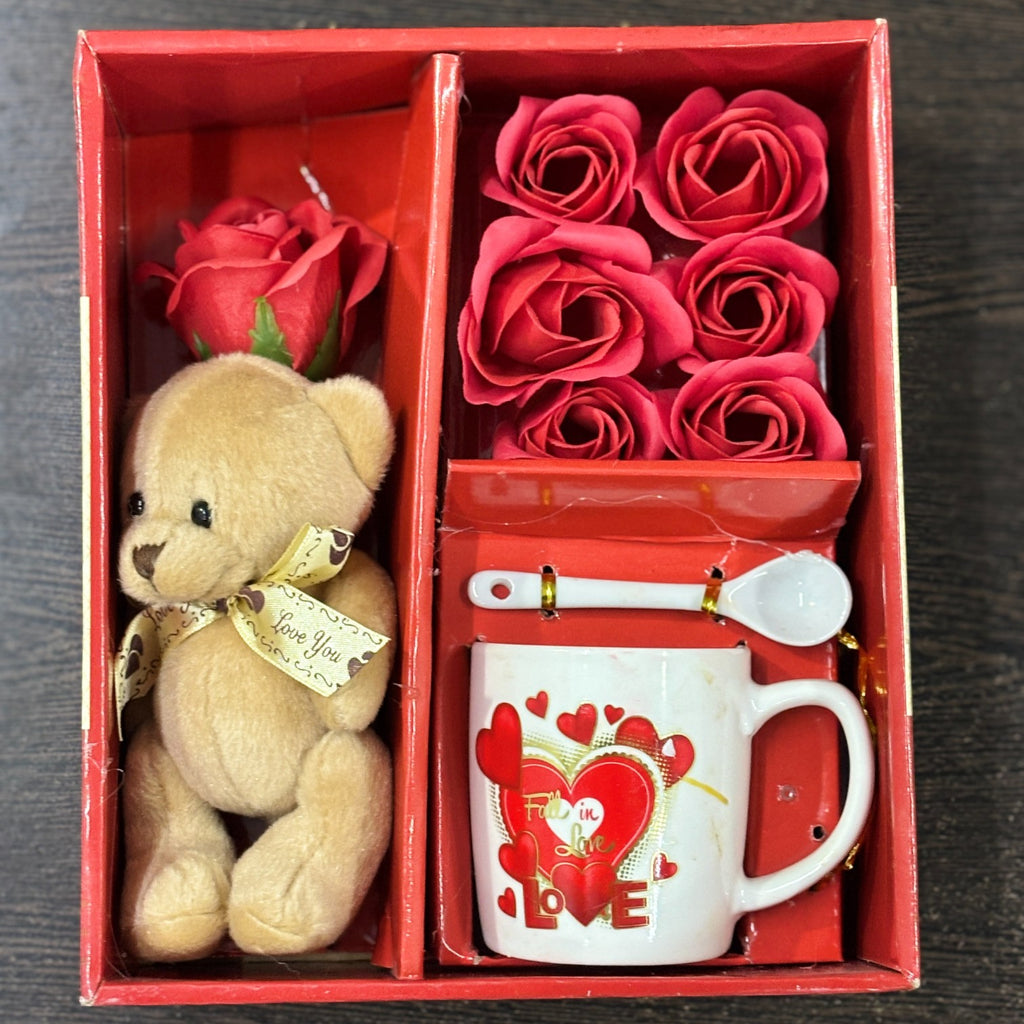 What's in the Gift: Inside this delightful package, you will find a lovely coffee mug, a cuddly teddy bear, and a beautiful artificial rose. Each of these items has a unique significance, making this gift set a symbol of your affection and care.