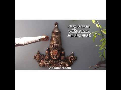 The produce seen above is a wall hanging figure of the crown or head portion of Lord Balaji as seen in the picture. The product is made of alloy and has a rustic, earthy finish to it. You may use it as a wall hanging piece or even place it against a support in one of your show case cabinet or in your Pooja room. You can also use it as a decor item for your garden or balcony area. It comes for a very good price, so, you may not want to miss it. Also, it's easy to maintain and can be dusted with a wipe or a damp piece of cloth.