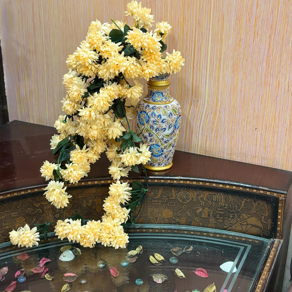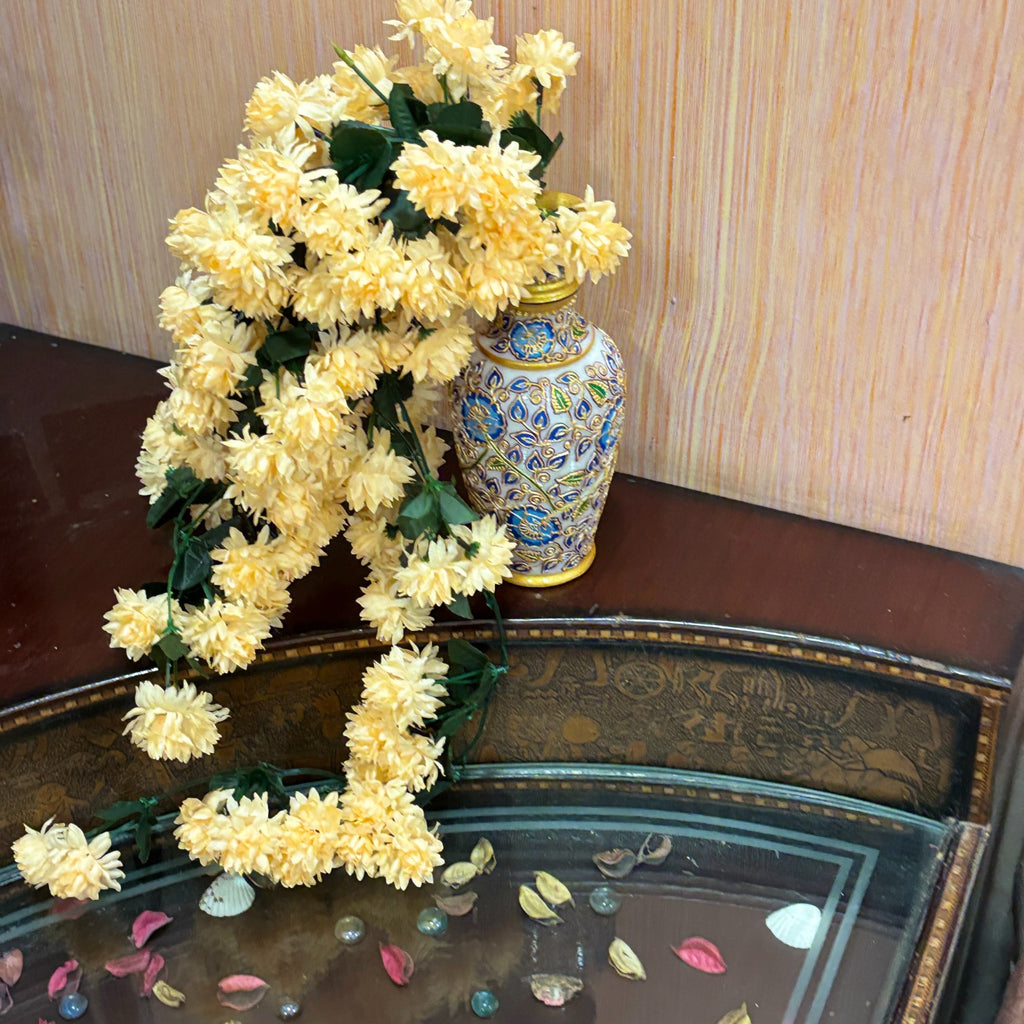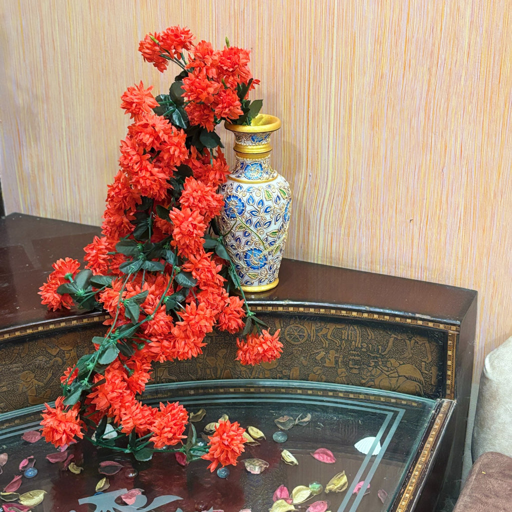 Ideal for living rooms, bedrooms, kitchens, offices, temples, and garden areas, this decorative floral hanging also makes a thoughtful gift choice for festivals, weddings, anniversaries, or housewarming parties. Whether you’re preparing your home for Diwali, Navratri, or everyday decoration, this artificial flower bunch adds a touch of beauty and positivity.