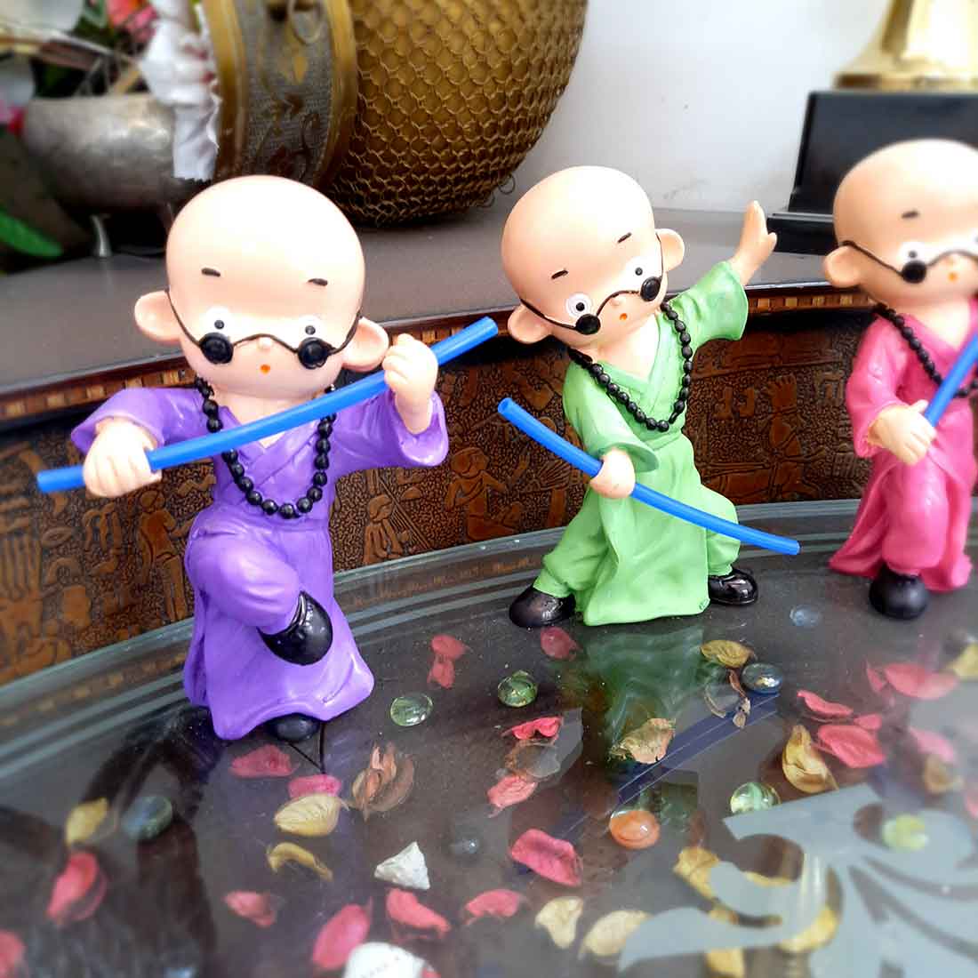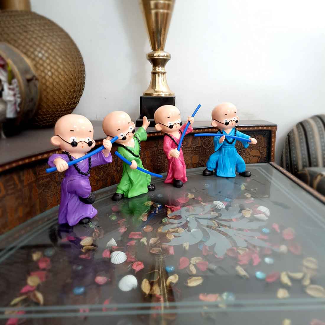 Keeping baby monks at home are believed to be very auspicious and brings prosperity, abundance and happiness in the entire household. This figurine set of 4 baby monk in Kungfu pose will bring immense positive vibes around it. This is very light weight and can be placed anywhere like in the shelf or showcase of your drawing room or the table of your bedroom. This statue is a perfect combination of cute yet elegant and the baby monks are holding pipe in their hands which makes it all the more attractive. This is also a perfect gifting option for housewarming parties to your friends or family. Made of resin this beautiful yet sturdy figurine will last for years to come and continue to brighten up the decor of your room. Keeping it clean is also very easy, just wipe it with a dry cloth and it’s done! So, decorate your home with this lovely piece of beauty or gift it to a friend, family or loved ones.