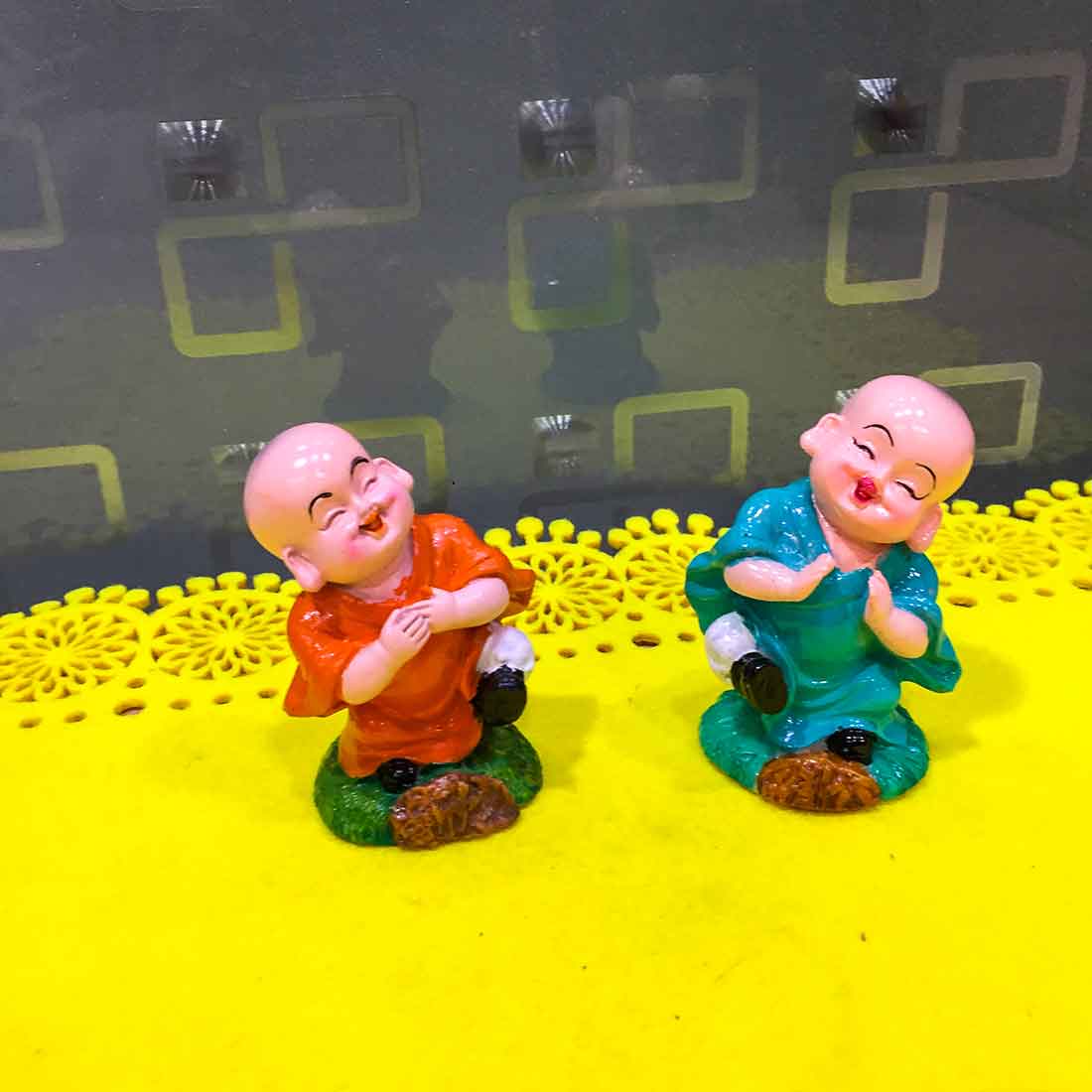 Cheer up your home and office with this unique showpiece. Used for Car Dash, Living Room, Office Decoration & gifts. Great for Home Decor and Feng Shui Showpiece. Add a touch of tranquility to any space with this Baby Monk Buddha set of 2. Ideal for home decor, these Buddha figurines are also great as office showpieces or accessories. It is also suitable to use it as a feng shui statue, meditation decoration, zen garden ornament. This Resin showpiece will make a fine addition to your decor collection. Add some colors to our set of magnificent baby monk showpieces. Each of these pieces is detailed and flawless, giving a true impression of Lord Buddha. Incorporate these pieces into your home to bring a feeling of peace and serenity. This idol set is made of fine resin that gives it a sturdy quality and its vibrant colour makes it a bright and cheery addition to your home or office décor. Buy This 3 Baby Monk Buddha Showpiece Set For Car Dash, Living Room, Office Decoration & Gifts And Bring Blessings Of Lord Buddha In Your Home.