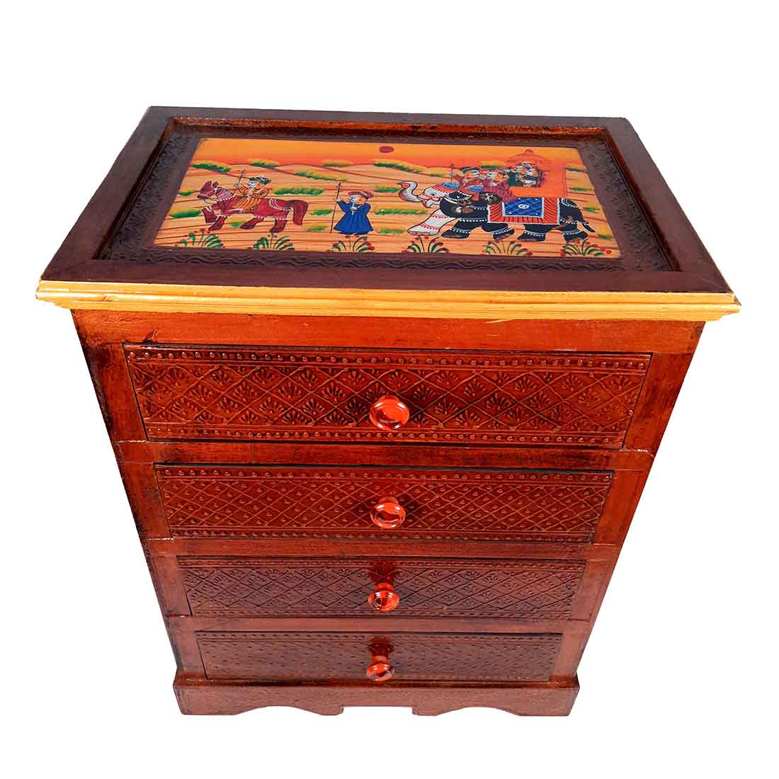If you have your eyes set for something inherently antique for your home decor, pick this epitome of exquisiteness from our collection. The side table is carved from real dark word and polished to perfection. The additional wooden work in the upper side of the table adds a unique dimension to its overall vibe, while the brass work on top bring the element of shine. The brown tabletop allows any object to be displayed perfectly in sheer contrast.