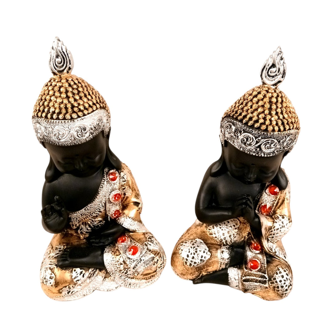 This set of two is ideal for decorating multiple spaces such as the living room, bedroom, home mandir, office desk, study table, shelf, meditation corner, or reception area. The serene sitting posture and soft expressions of Baby Buddha create a soothing atmosphere that promotes relaxation and emotional balance.