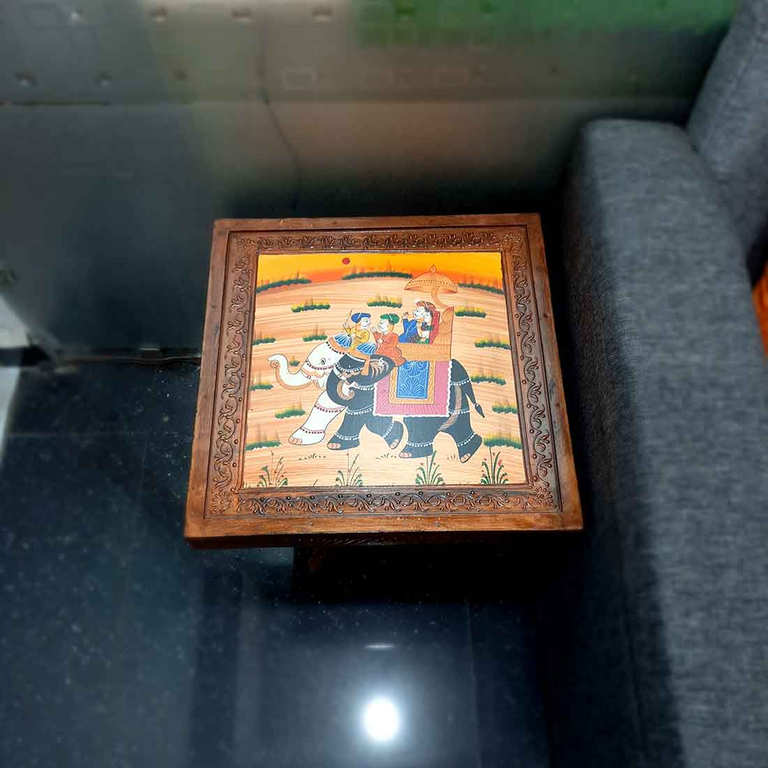 Creating a perfect coffee corner gives you a place to retreat to when you are feeling low or tired. It also provides you with a place to celebrate in a sweet corner all by yourself. Our ‘By-Your-Side’ series helps you build that corner of yours. You can place this set of two tables in your study, or by the window overlooking the garden, to create a corner, where you can sit and enjoy the rains. These wooden square top tables give a handicraft tinge to your home décor. Painted with beautiful brown shade, this is shiny and glossy in look and décor. Its top is decorated with Indian embossed design and hand painted with colours bright and shiny. The Indian art depicting the Rajas and the Maharajas gives it an ancient touch and brings old times back to your home.