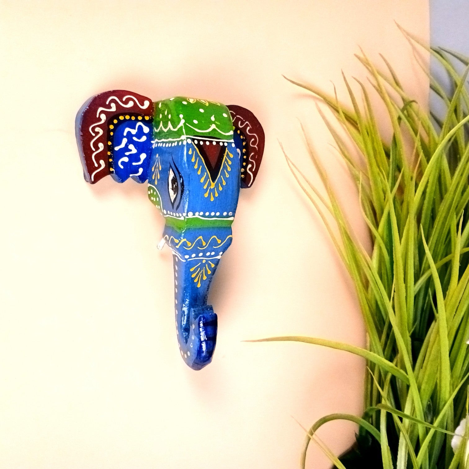 Elevate your interiors with this Blue Wooden Elephant Head Wall Hanging a perfect blend of tradition artistry and durability. Handcrafted by skilled artisans this décor piece is made from premium quality wood and features a beautifully detailed elephant head design with a striking blue finish. Symbolizing wisdom prosperity and strength the elephant is considered auspicious and brings a positive vibe to any living space.