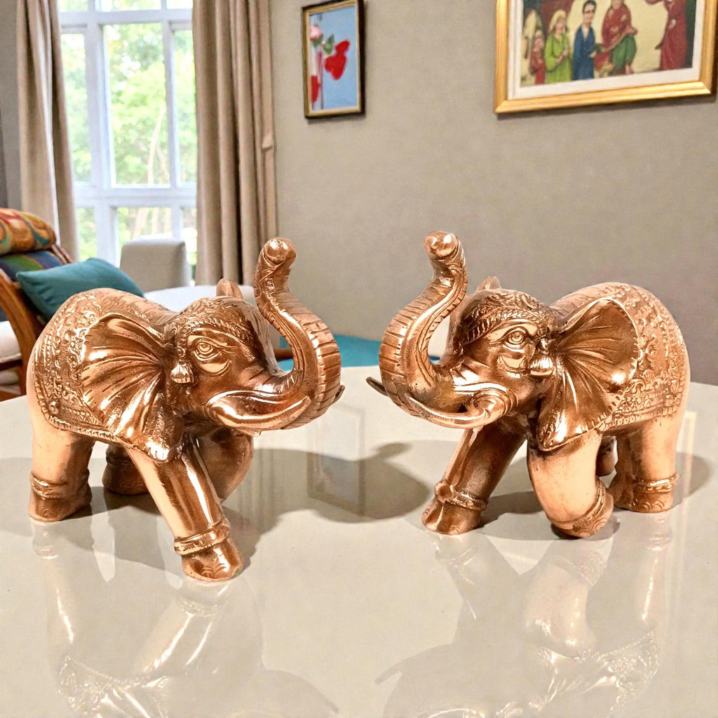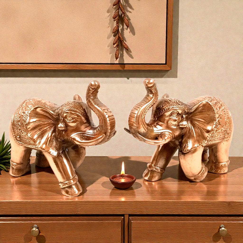 Each 10-inch lucky elephant statue is ideal for decorating your living room, office desk, mandir, entrance table, or display shelf. The refined detailing and elegant finish allow the statues to blend seamlessly with modern as well as traditional décor styles, enhancing the overall ambiance.