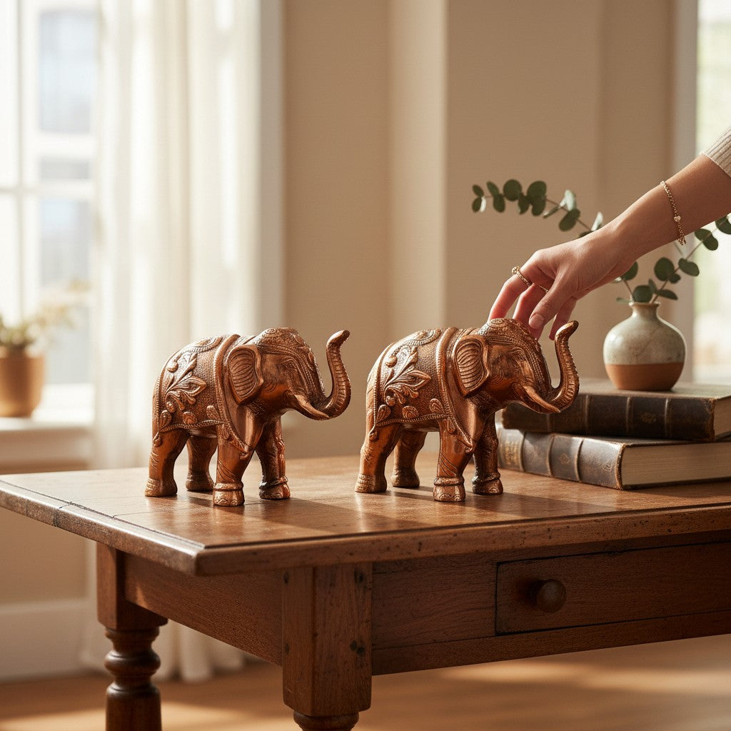 Each 10-inch lucky elephant idol is perfect for enhancing living room décor, office desks, mandir shelves, entrance tables, or display units. The balanced design and fine detailing blend beautifully with both modern and traditional interiors, creating a graceful and welcoming atmosphere.