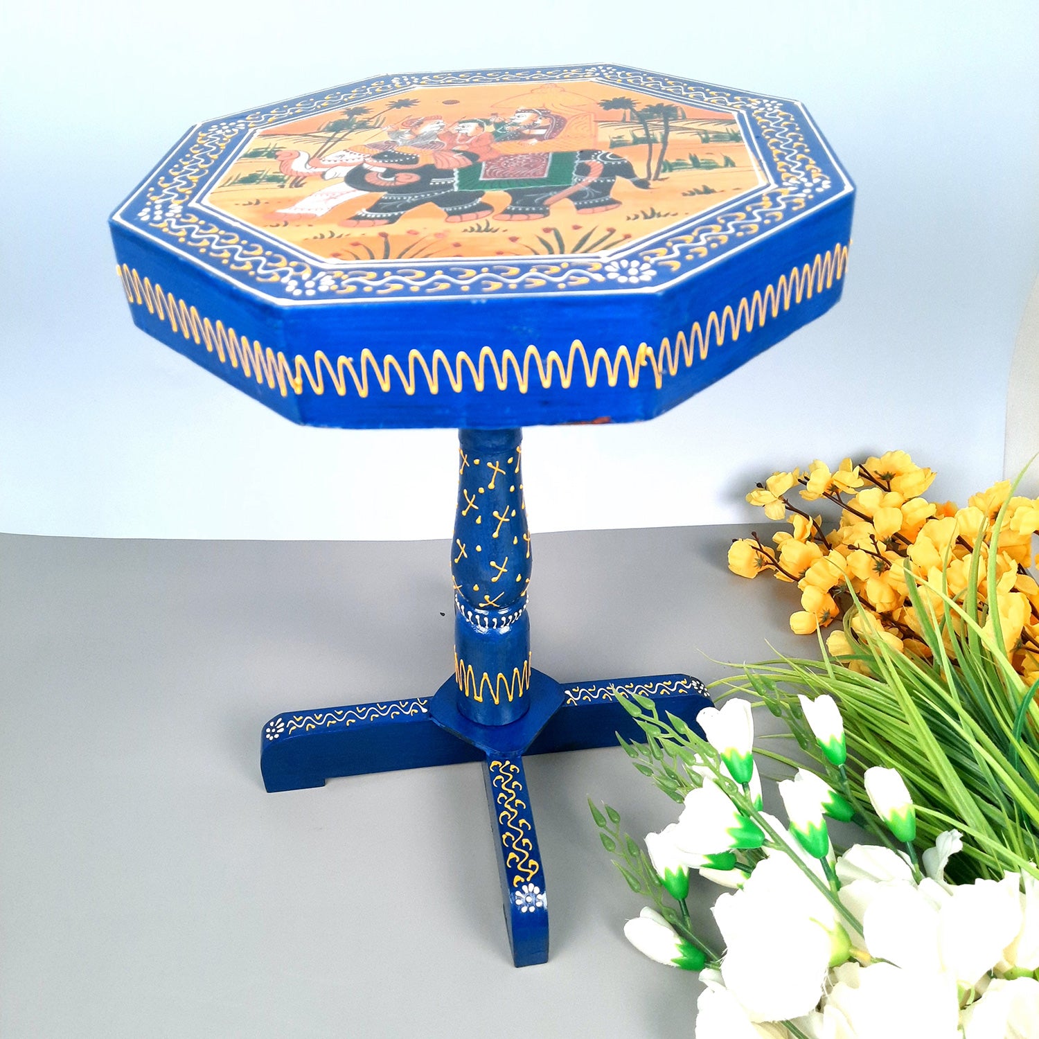 Whether you place them beside your sofa, use them as end tables, or as bedside companions, they add a rustic and warm feel to your space. Their versatile design allows them to seamlessly fit into any room, making them suitable for both contemporary and traditional settings. Our wooden tables are not just pieces of furniture; they are decorative gems. Their intricate Rajasthani handicraft and antique finish make them stand out as unique and timeless additions to your decor.