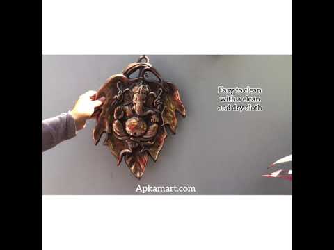 Introducing our exquisite Ganesha Wall Decor - a captivating masterpiece that brings the divine presence of Lord Ganpati into your living spaces. This stunning 15-inch wall hanging showcases Ganpati in a serene seated posture, gracefully perched upon a delicately crafted leaf. Designed to infuse your surroundings with spiritual energy, this wall art is more than just a decoration; it's a symbol of prosperity, positivity, and protection.