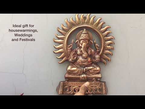 With the sun behind his powerful aura, Lord Ganesha sits majestically on his throne. Rising to the expectations of the perfect wall hanging for your home and workplace, this beautifully crafted alloy piece with a dash of copper glow is a marvel to have on your walls. With beautifully etched lines over this piece accentuating the features of the statue, this piece of home decor invokes spiritual as well as decorative vibes for your surroundings. The ideal size makes it a glorious piece to hang on your walls in any place that you want to – be it your temple or your rooms. Bring this piece in your life today and let the finesse of this artistic marvel take over your with grace!