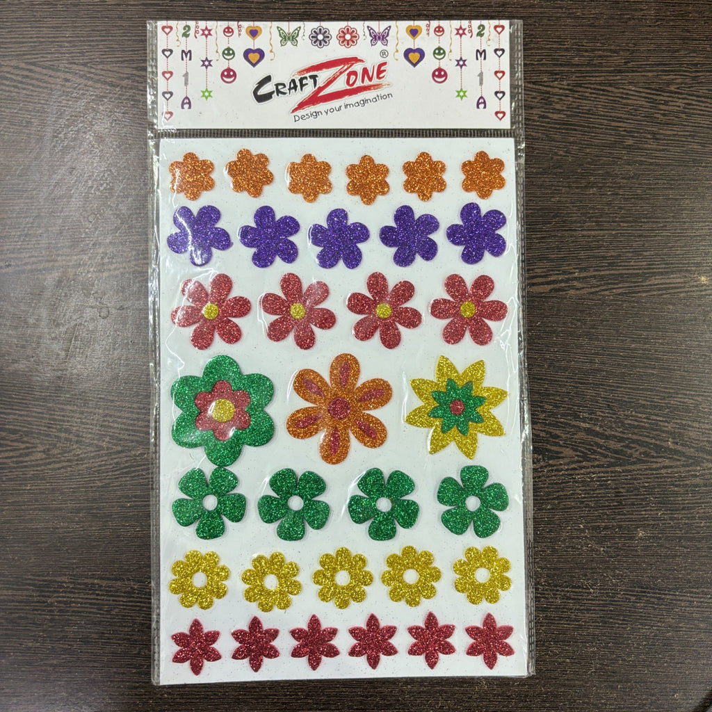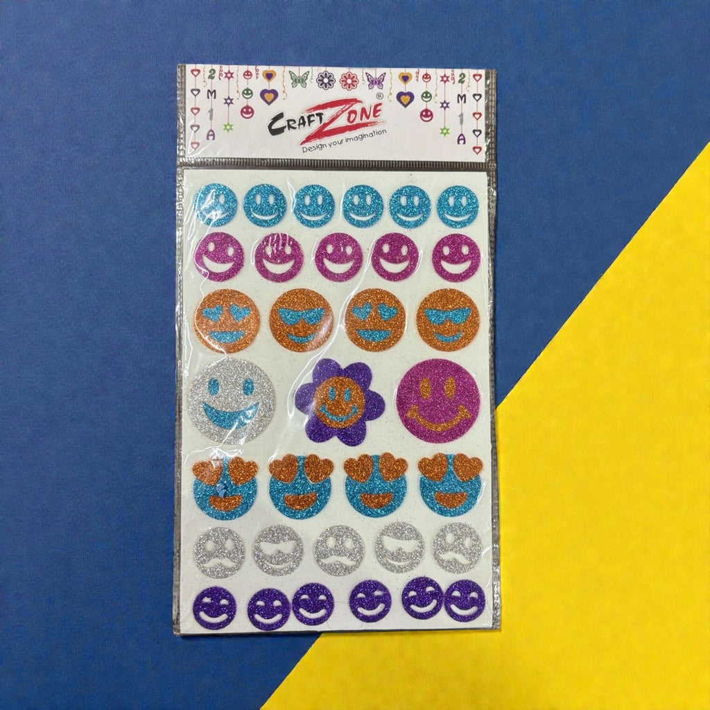 Each sticker features vibrant smile patterns, cute flower shapes, and colorful glitter textures that instantly enhance any surface. Designed to stick firmly, these craft glitter stickers stay in place without the need for glue—keeping the process neat and fun for children.