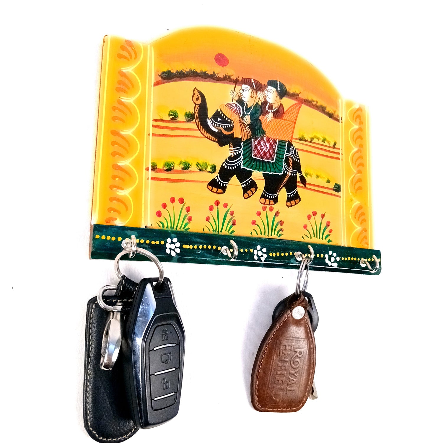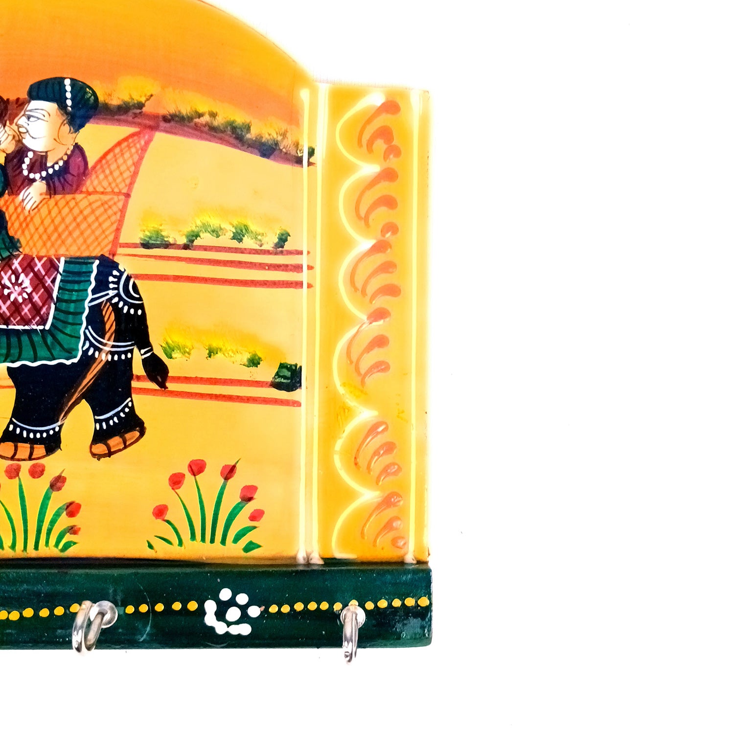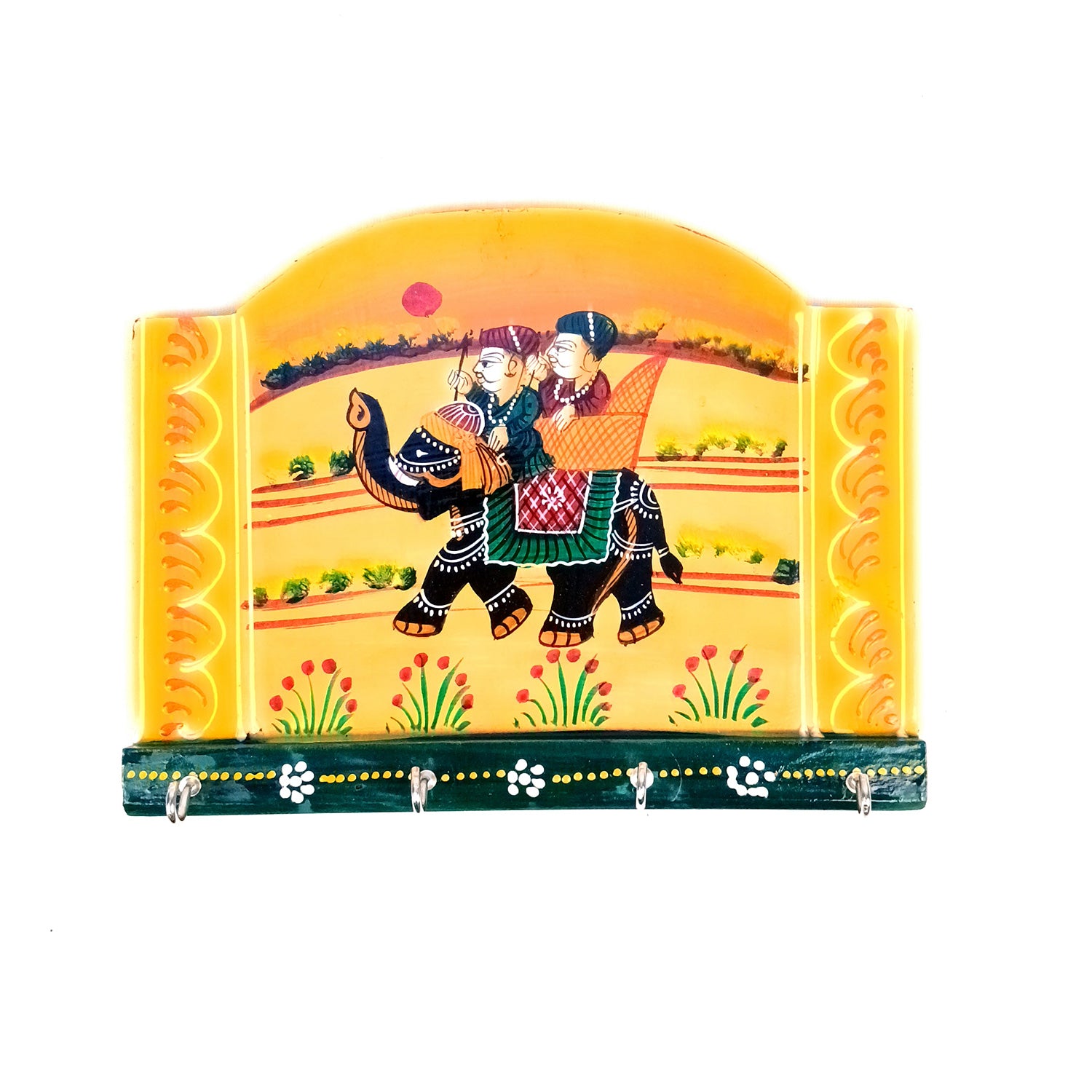 Crafted from premium wood and handpainted by skilled artisans, this wall-mounted key holder serves as a beautiful accent piece while ensuring your keys are always in place. Its compact size and vibrant design make it a standout home decor item, suitable for the entrance, hallway, living room, or even your office cabin or desk wall.