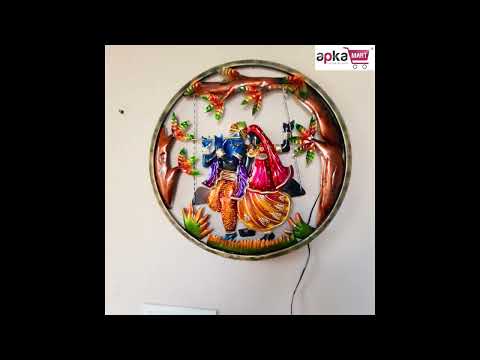 Introducing the exquisite Radha Krishna Backlit Wall Hanging, a mesmerizing piece of Metal Wall Art Decor that effortlessly combines spirituality, aesthetic charm, and modern innovation. This stunning 22-inch decor masterpiece is not only a captivating addition to your home but also makes for a thoughtful and memorable gift for your loved ones. Imagine gazing upon a scene where Radha Krishna, the eternal divine couple, are depicted sitting together on a swing, sharing a bond of pure love and harmony.