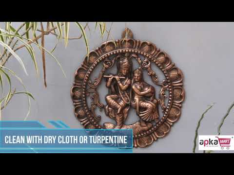 Apkamart brings you the best Indian products and utilities which are designed specially to match the theme of most Indian homes. Radha Krishna is the epitome of divine love and that essence is captured through this elegant wall hanging. Elevate the ambiance of your living space with the exquisite Radha Krishna Wall Hanging, a delightful addition to elevate your home decor. Meticulously fashioned with intricate details, this 18-inch metal art masterpiece beautifully encapsulates the essence of Lord Krishna serenading his flute, while Radha stands gracefully by his side.