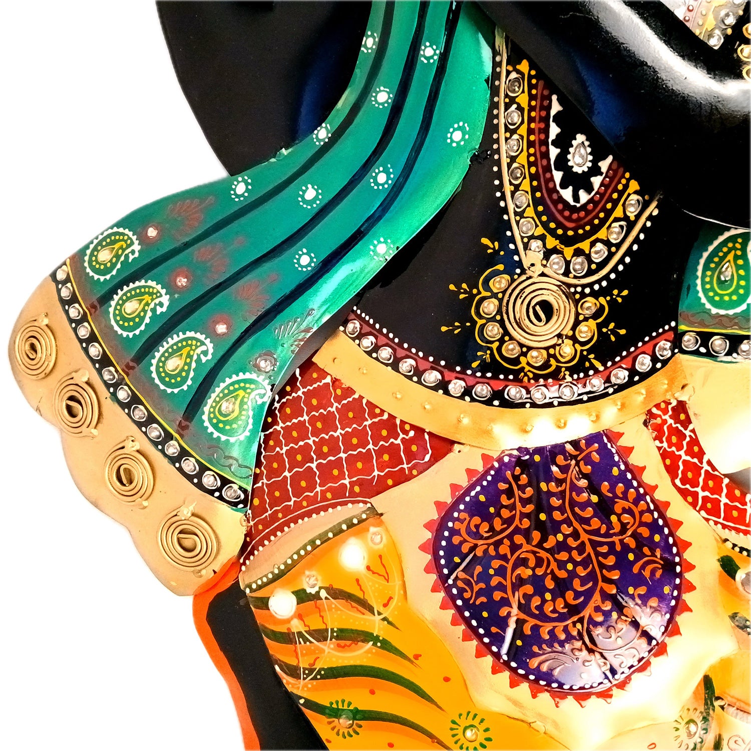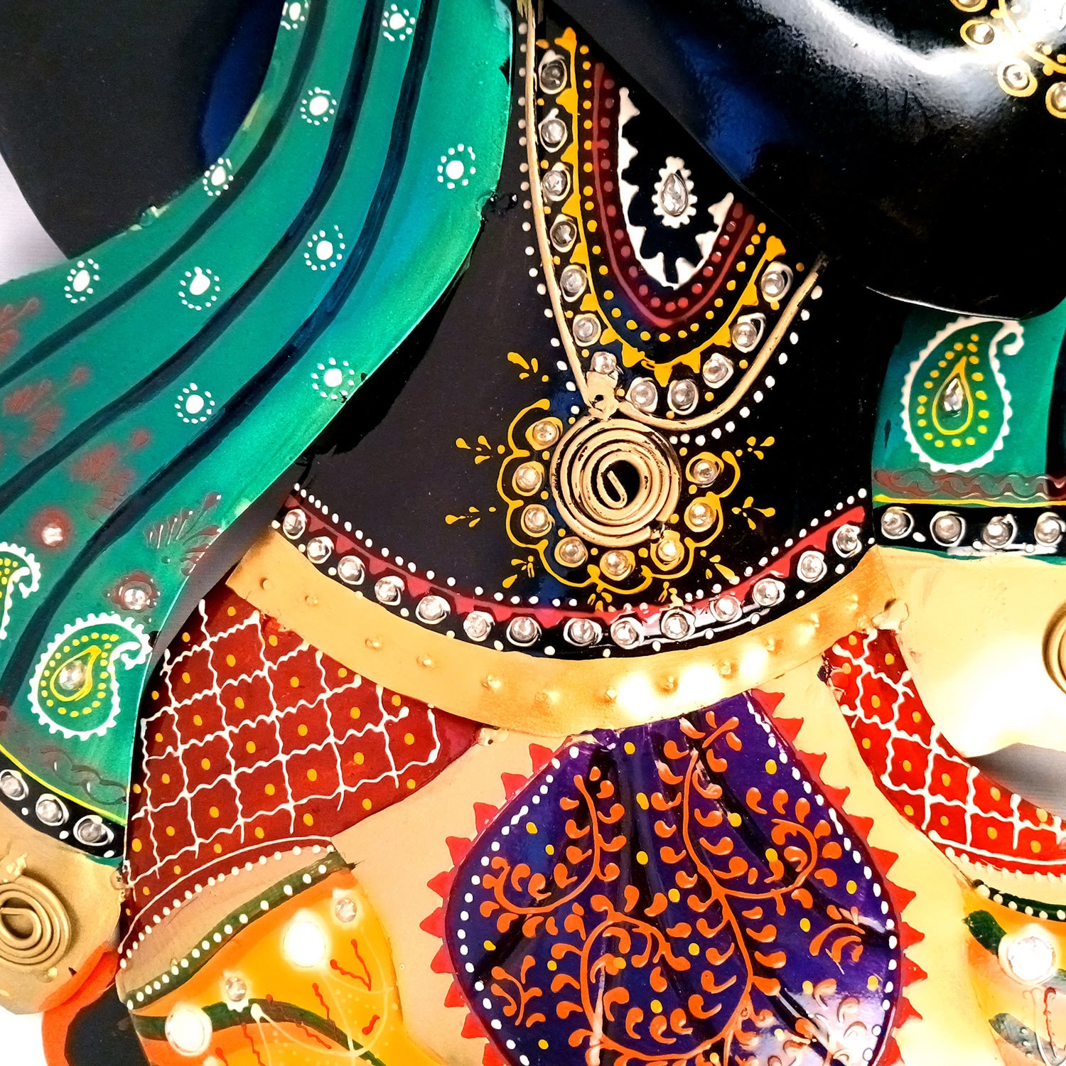 Transform your home into a haven of spiritual elegance with this Krishna Wall Hanging Big. Crafted from durable metal and adorned with vibrant hand painting and intricate kundan work, this stunning wall art is a true masterpiece. Its large size makes it a striking centerpiece for big walls, living rooms, or large spaces, instantly elevating the ambiance of any area.