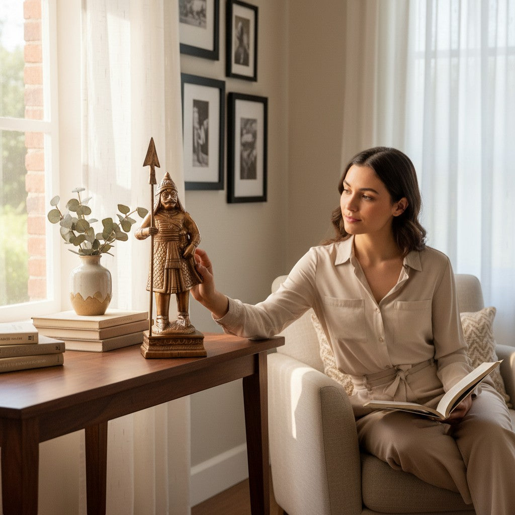 Own a piece of Indian history with our Maharana Pratap Statue, a majestic historical human figurine showpiece designed to bring an aura of courage and prestige to your living room and home decor. This warrior idol is meticulously crafted to capture the legendary King of Mewar in a position of strength, making it a commanding focal point for office desks, libraries, and mantelpieces. Whether you are looking for a premium gift for housewarmings, corporate events, or a patriotic collectible, this high-quality alloy decorative statue serves as a timeless tribute to the "Lion of Mewar." Its intricate detailing and antique finish seamlessly blend with both traditional and modern interiors, offering more than just decoration—it is a daily inspiration of resilience and honor for any modern Indian home.