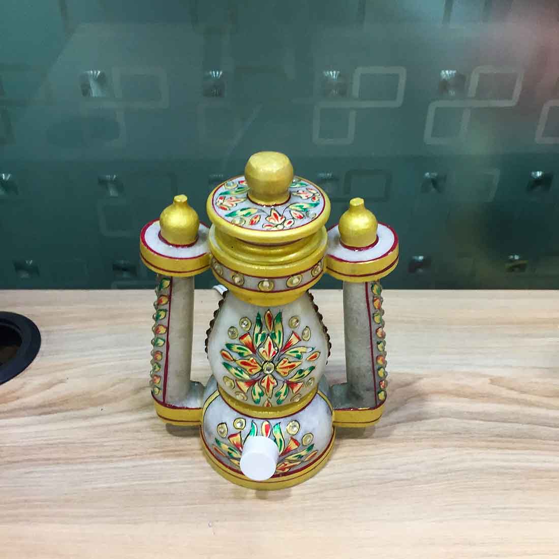 Its intricate detailing showcases the craftsmanship that goes into its creation, making it a conversation starter and a focal point in any room. Incorporating this lantern table lamp into your home decor is a simple way to introduce elegance and style. The natural veining of the marble adds a touch of uniqueness to each piece, ensuring that no two lamps are exactly alike. Transform your living spaces with the warm glow and sophisticated charm of the Marble Lantern Table Lamp.