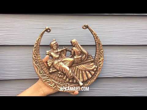 Introducing the captivating "Krishna Radha Wall Hanging" - an enchanting piece of metal wall art showcasing a charming lunar motif, gracefully sized at 9 inches. This exquisite creation splendidly captures the ethereal love saga of Radha and Krishna, portraying them in a captivating stance as Lord Krishna enthralls with his mellifluous flute melodies. This artistic marvel carries profound symbolism, rendering it a perfect addition to your puja room, sacred altar, or any hallowed space.