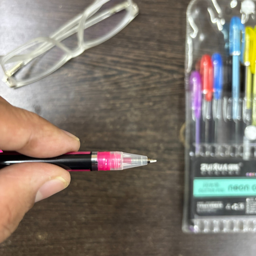 Crafted from safe, non-toxic, and quick-drying ink, these pens are child-friendly and mess-free, allowing smooth creativity without smudges or leaks. Their neon colors with glitter effect work beautifully on both white and dark paper.