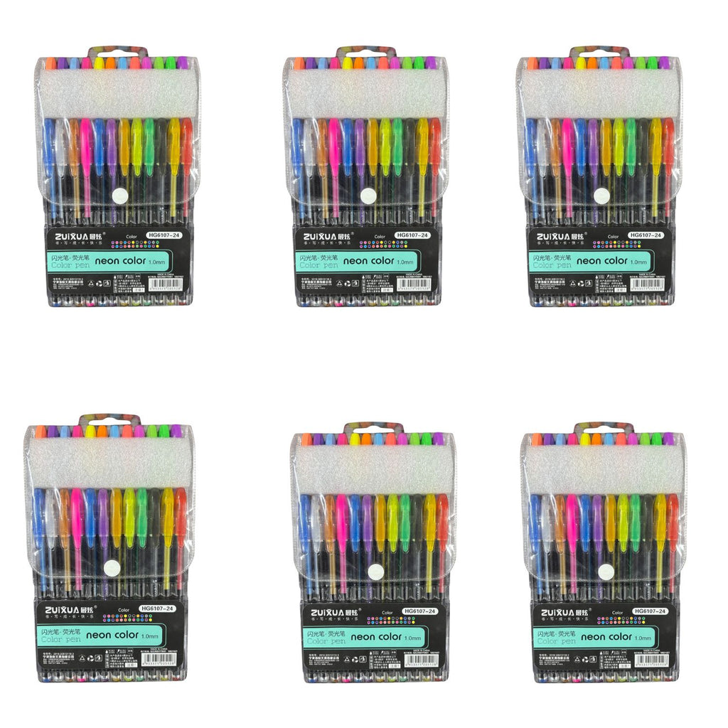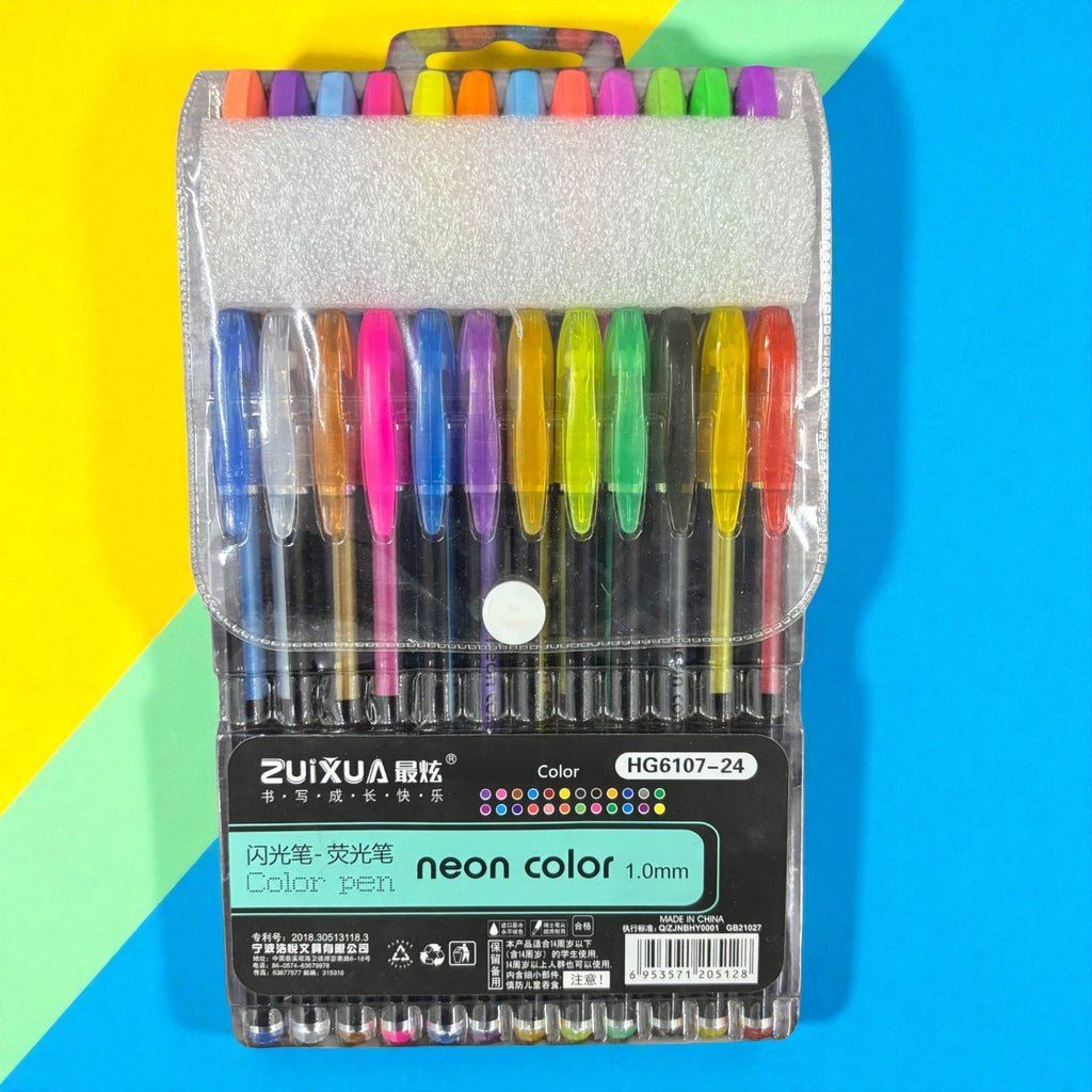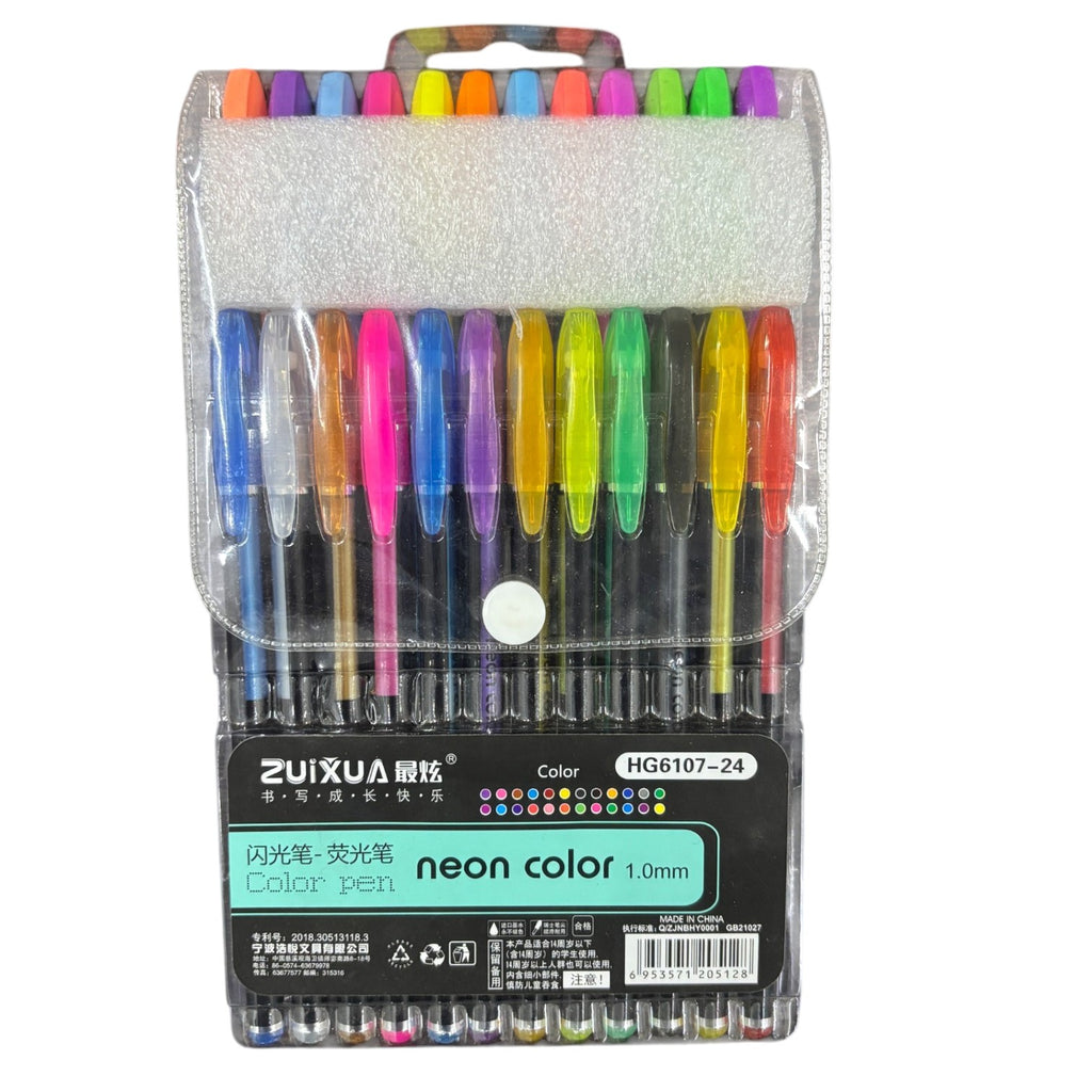 Set of 24 Neon Gel Pens: Includes bright, fluorescent ink shades for vivid coloring and highlighting.