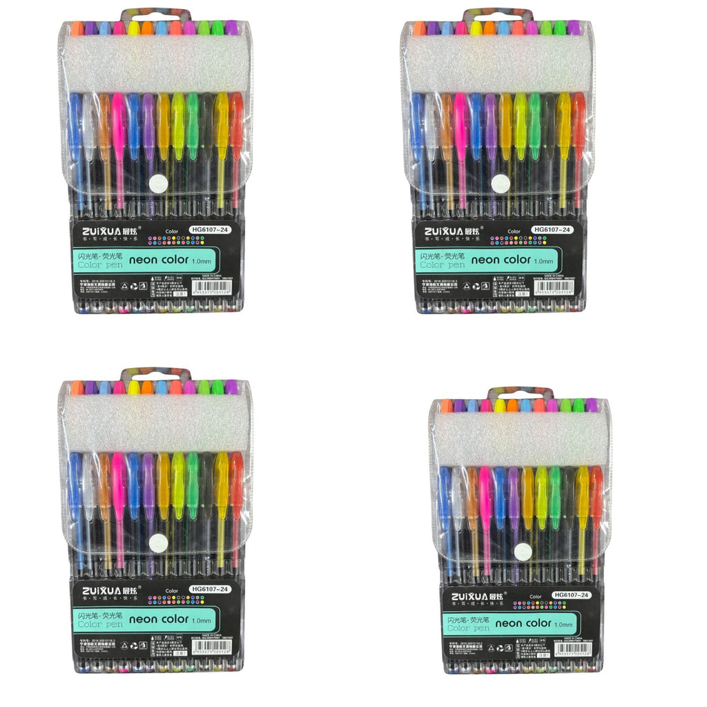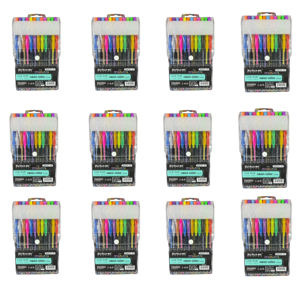 Neon Gel Pen Set | 24 Fluorescent Highlighter Gel Pens in Each Pack | Smooth Writing & Drawing Pens for Kids, Students, Artists, Art & Craft Stationery
