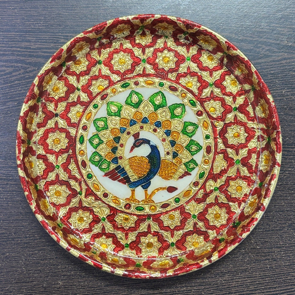 Perfect for use in home mandir, temple, pooja room, or festive décor, this peacock design pooja thali blends spiritual significance with decorative elegance, making every prayer moment more special and meaningful.