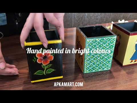 Organisation made beautiful — this 4-inch Hand-Painted Wooden Pen Organiser brings the expressiveness of Indian folk craft to the everyday act of keeping pens and pencils in order. Made from quality Wood (3-inch width × 4-inch height, 140 gm) with vibrant multicolour hand-painted decoration, the organiser combines the eco-conscious warmth of natural wood with folk art that earns genuine attention on any desk surface.