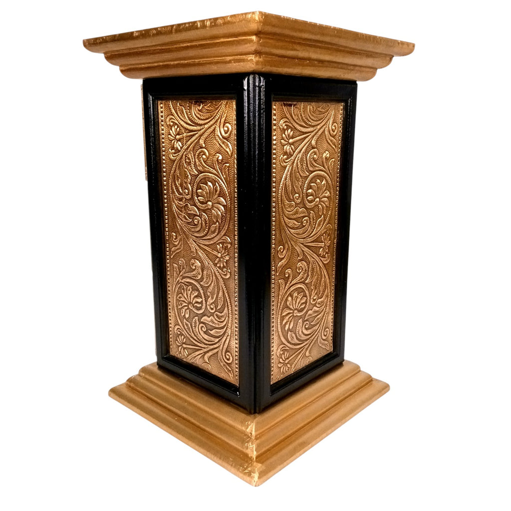 Traditional Design: Classic pillar-style structure with intricate wooden craftsmanship.