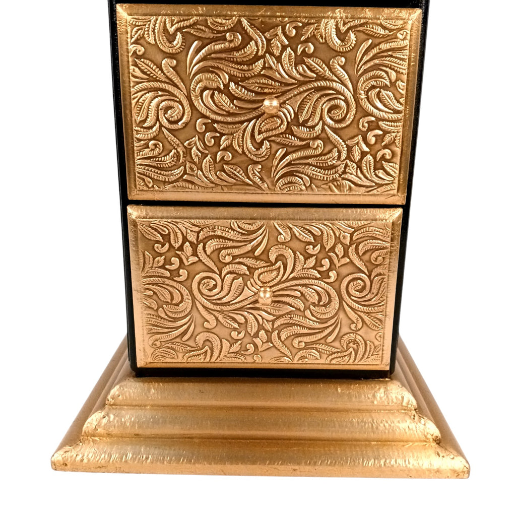 Featuring five spacious drawers, this pillar-style table keeps your belongings organized while maintaining a clean and stylish aesthetic. It can be used as a bedside table for books, accessories, and gadgets, or as a decorative stand to display vases, lamps, and collectibles. Its rich traditional design with detailed craftsmanship brings warmth and elegance, making it a perfect addition to both contemporary and ethnic interiors.