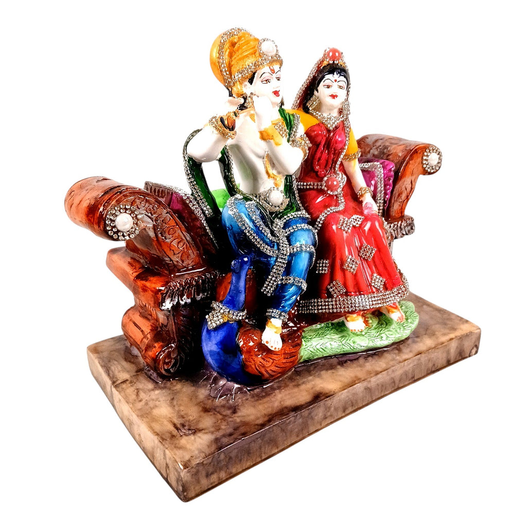 Radha Krishna statue sitting on royal Sinhasan