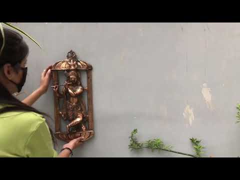 Introducing the Krishna Wall Hanging – a mesmerizing embodiment of artistic grandeur tailored for your home's adornment. Measuring a resplendent 19 inches, this captivating piece of wall decor encapsulates the divine aura of Lord Krishna, the cherished deity renowned for his entrancing flute melodies and revered role in sacred puja ceremonies. Meticulously fashioned with an unwavering attention to detail, this wall hanging is forged from metal and boasts an elegantly rendered portrayal of Krishna, enraptured in playing his divine flute.