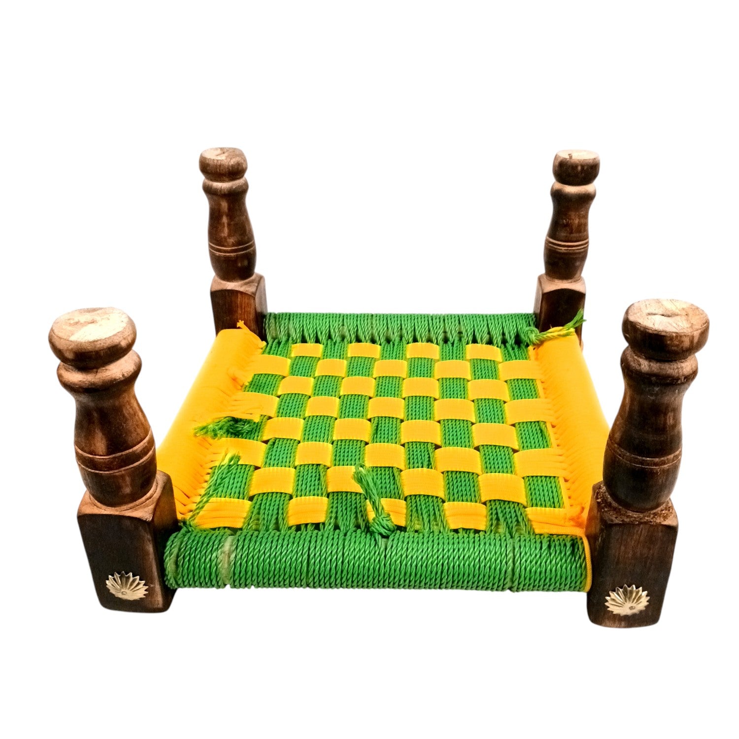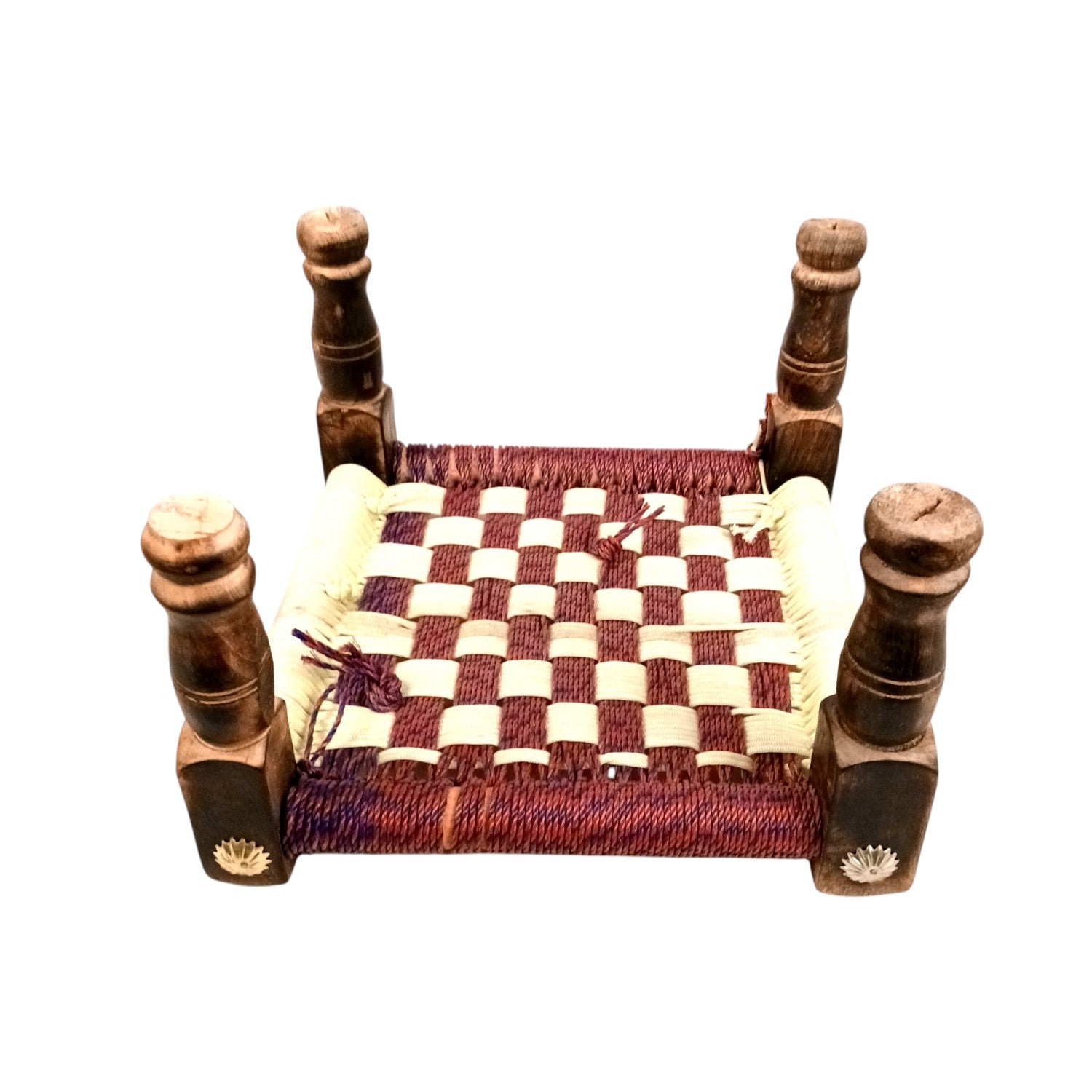 Add a touch of tradition and elegance to your space with this beautifully handcrafted Wooden Khat Showpiece. A perfect fusion of cultural charm and utility, this miniature khat bed serves multiple purposes – as a home decor item, a Laddu Gopal bed, and a unique gift item for special occasions.