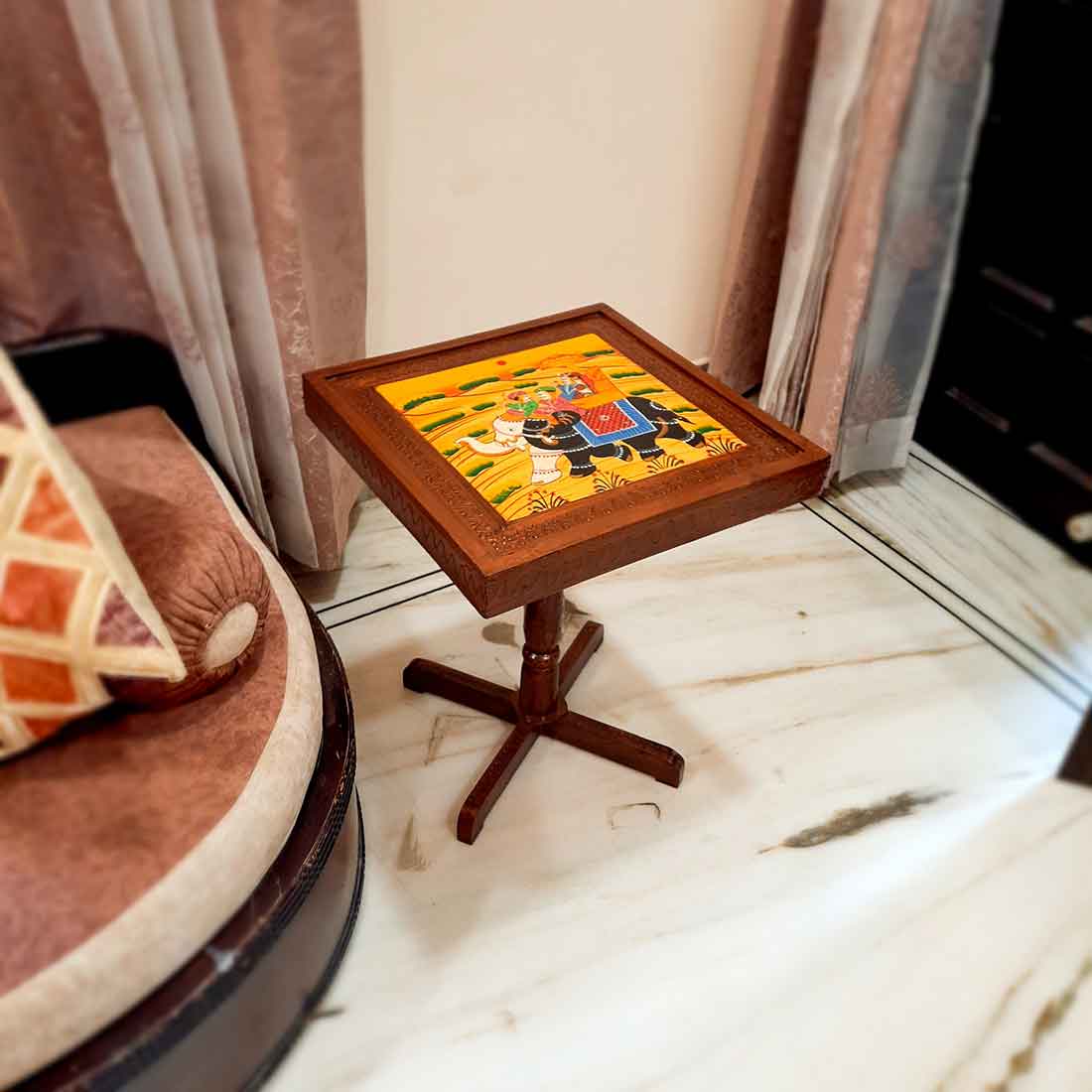 Bring home this square side table to deck up your home. You can use this table for various purposes such as to keep your books, telephone, lamps, vases etc. It will add beauty to your interiors. Bring this multipurpose table home and flaunt your decor in front of your guests. You can also gift it to your loved ones on special occasions.