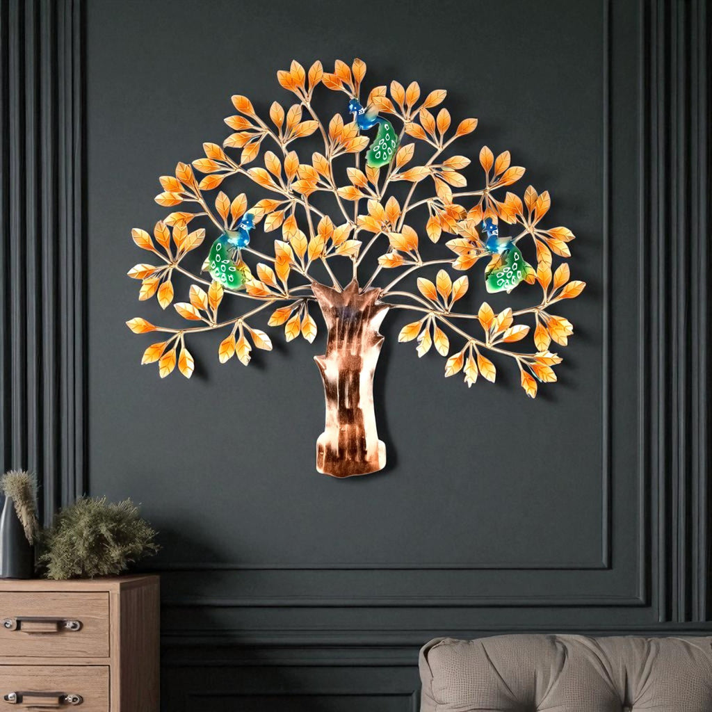 A heavy metal tree wall hanging decor adds a rustic appeal to the ambiance of your house. It is made with high-quality iron that adds durability to this lovely wall hanging decor. A beautiful tree wall hanging made with a group of small birds. It is made of metal and finished in beautiful colors. You can hang this bird tree on any wall to give it an interesting look.