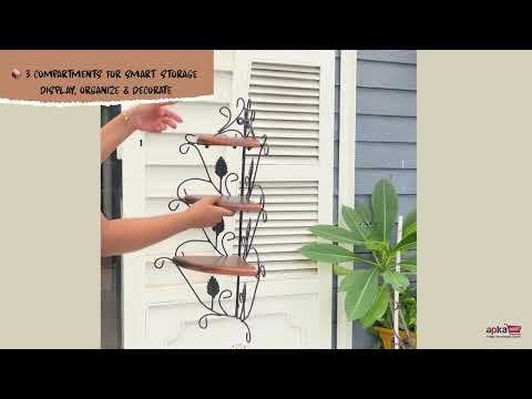 Maximise your wall space with the stylish utility of this Wooden 3-Shelf Floating Wall Bracket Stand — a 25 Inch tall wooden wall bracket with three floating shelves at 1700 gm, where wood and iron construction delivers a multi-level wall display and storage solution for showpieces, small plants, tea lights, books, and decorative objects in living rooms, kitchens, bathrooms, and bedrooms.