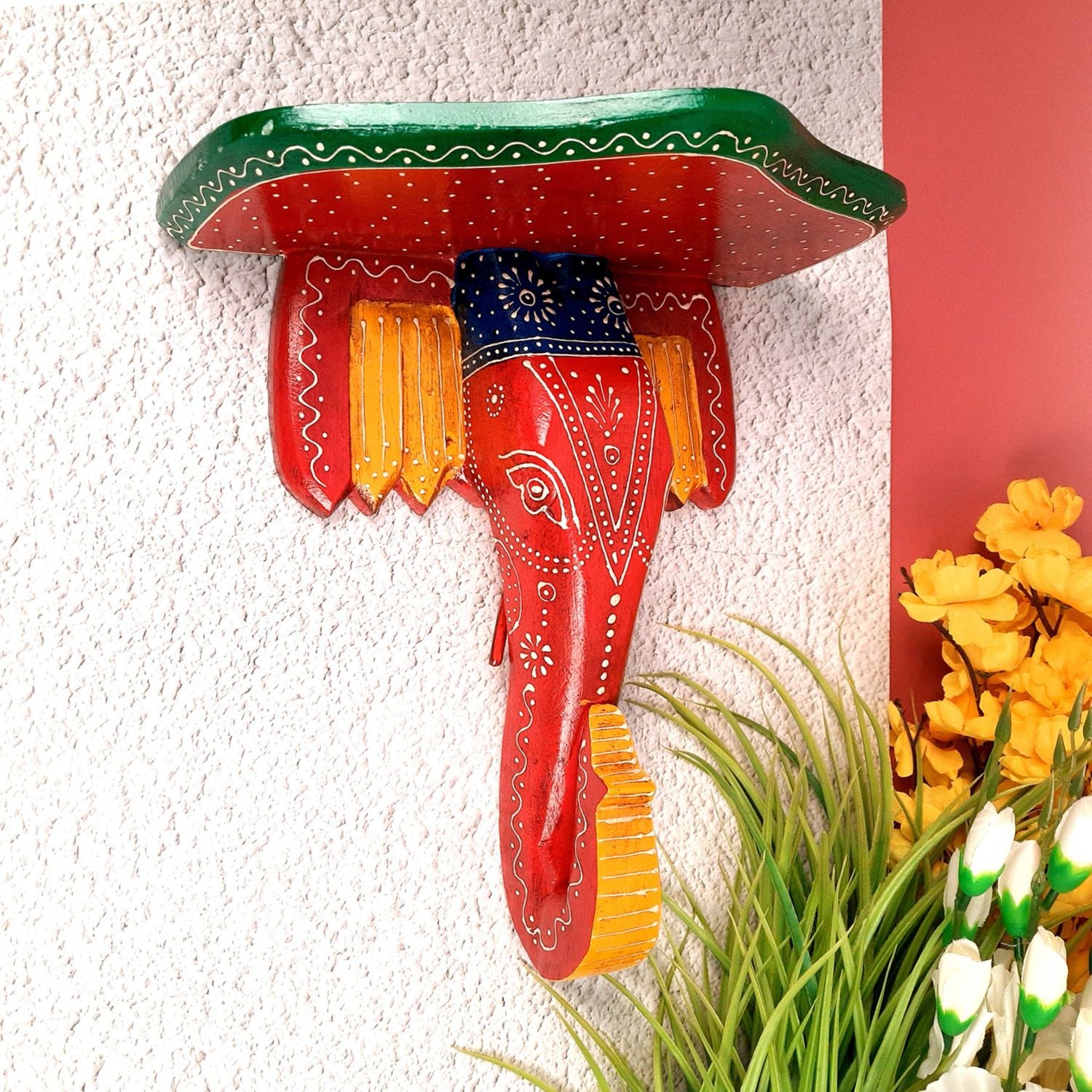 In the present time, space is one of the greatest issues. With compact house and flat/Apartment culture, Apkamart provides you with a perfect wall decor item that provides you with space for your showpieces. Made from wood, this wall bracket is polished to excellence. Its perfect elephant design will grace your home with the presence of an auspicious animal. Being a symbolic representation of Ganesh, Elephant is much revered in Indian mythology. Apkamart brings the same respect with this perfect wall decor. It can be used to keep your decoratives like small statues, vases and decorative boxes. It can also be placed in pooja room and used for keeping religious idols. In the study, it can be used to arrange your novels and small books. A perfect present for your friends, this wall bracket will fill your home with colour and shine.