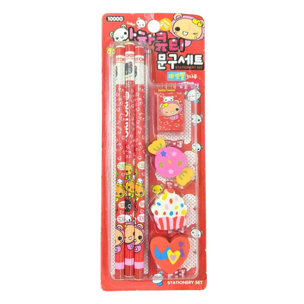 Cartoon Design Stationary Kit for Kids & Students | Complete School Stationary Kit with Pencil, Eraser, Sharpener & Study Essentials